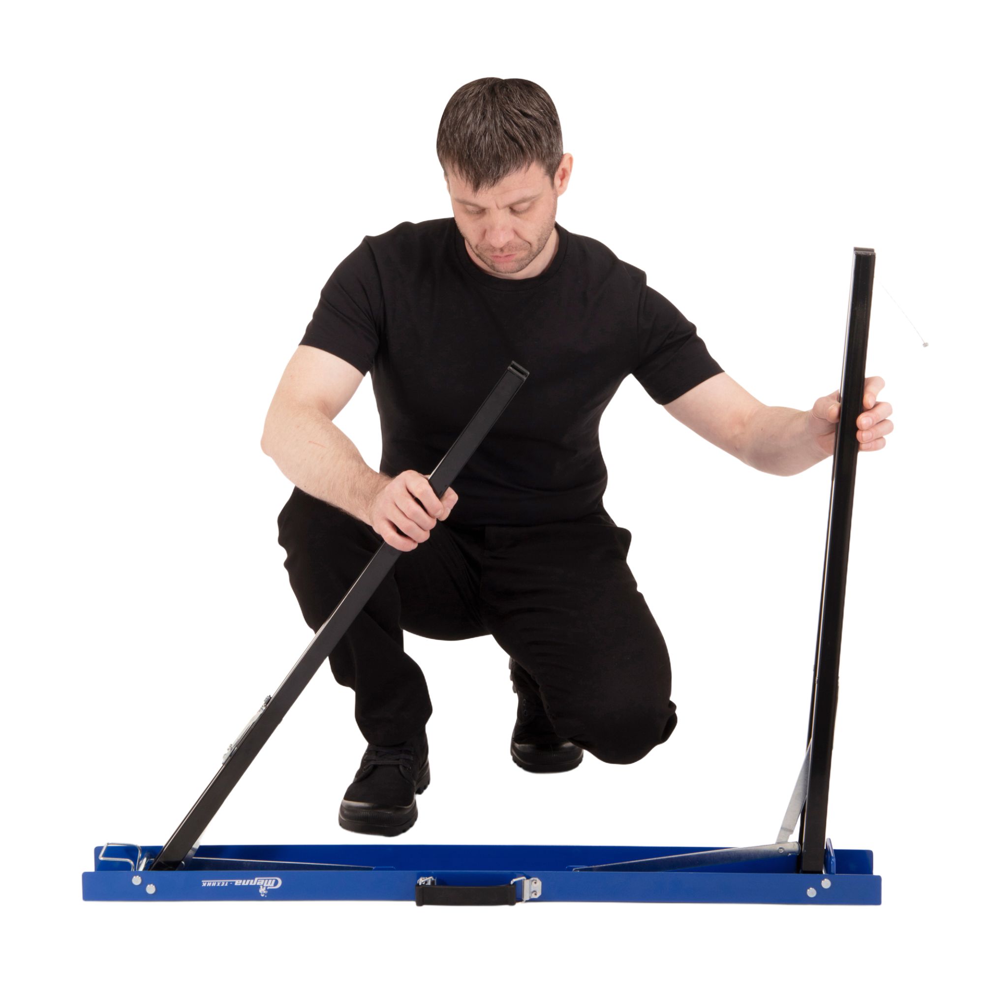 В сложенном виде козлы занимают очень мало места, что делает их простыми в использовании и удобными для хранения. Простая сборка без использования специального инструмента. Для удобства переноски на козлах предусмотрены ручки.