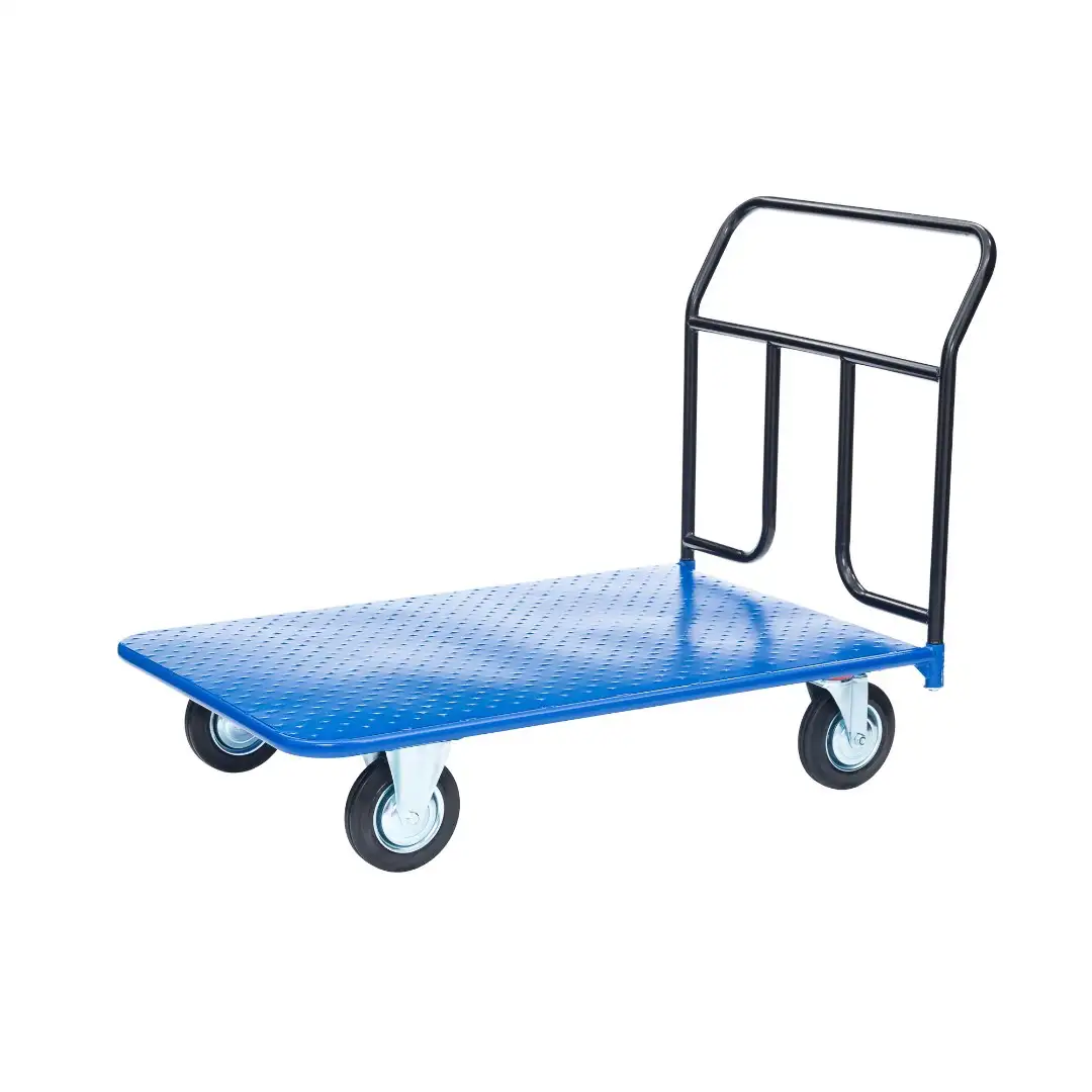 Мобильность тележки обеспечивается системой передвижения: два крупных цельнолитых резиновых колеса диаметром 200 мм в сочетании с двумя поворотными колесами (диаметр 75 мм) с резиновым покрытием, вращающимися на 360 градусов. Эффективный тормоз и правильно рассчитанная колея шириной 285 мм гарантируют легкость управления и стабильность при движении в любом направлении.