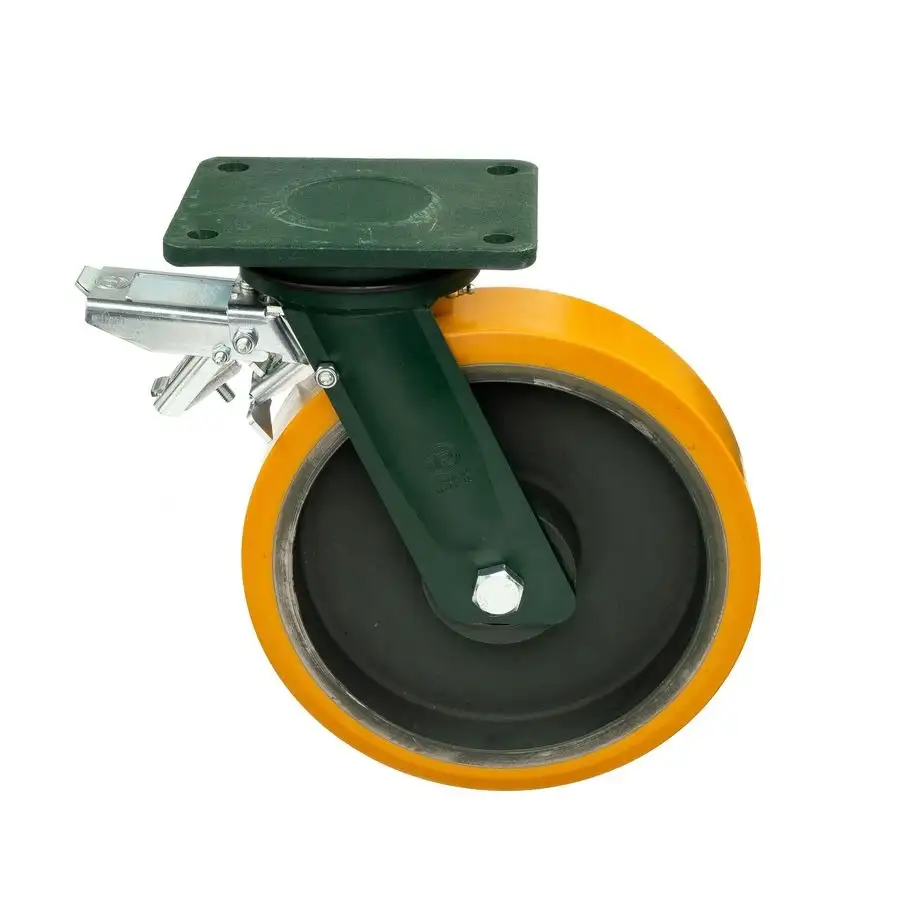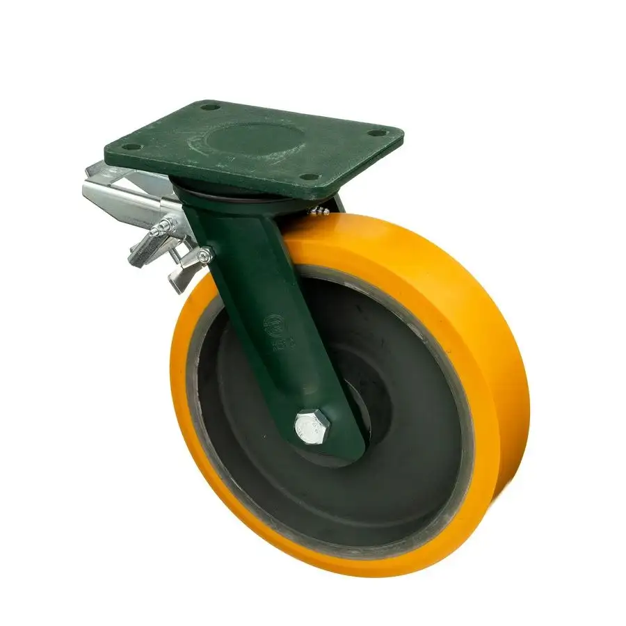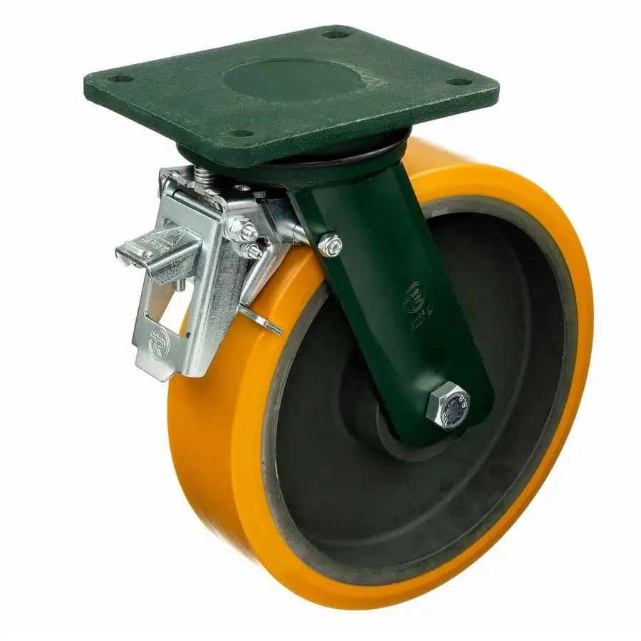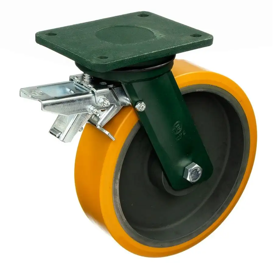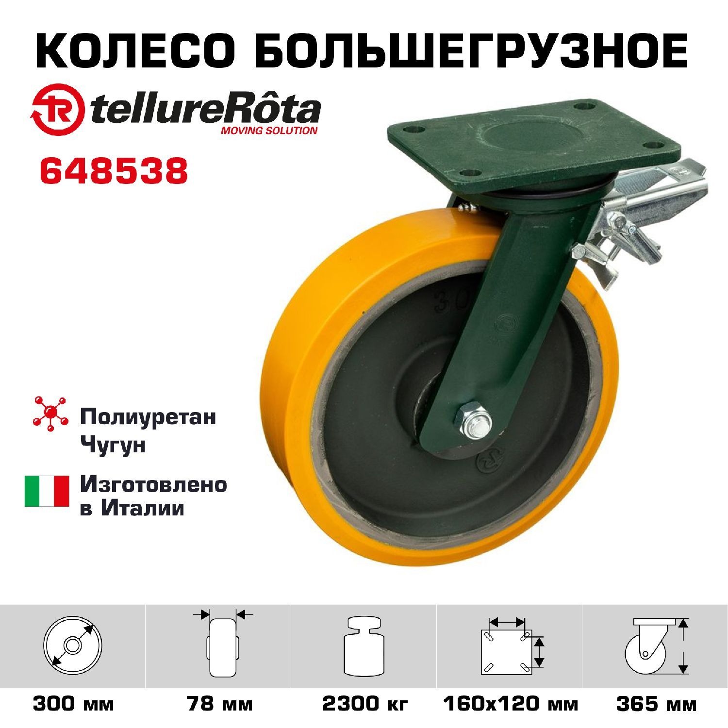 Колесо большегрузное (300 мм; 2300 кг) поворотное с тормозом Tellure Rota, полиуретан, чугун, шариковый подшипник 648538