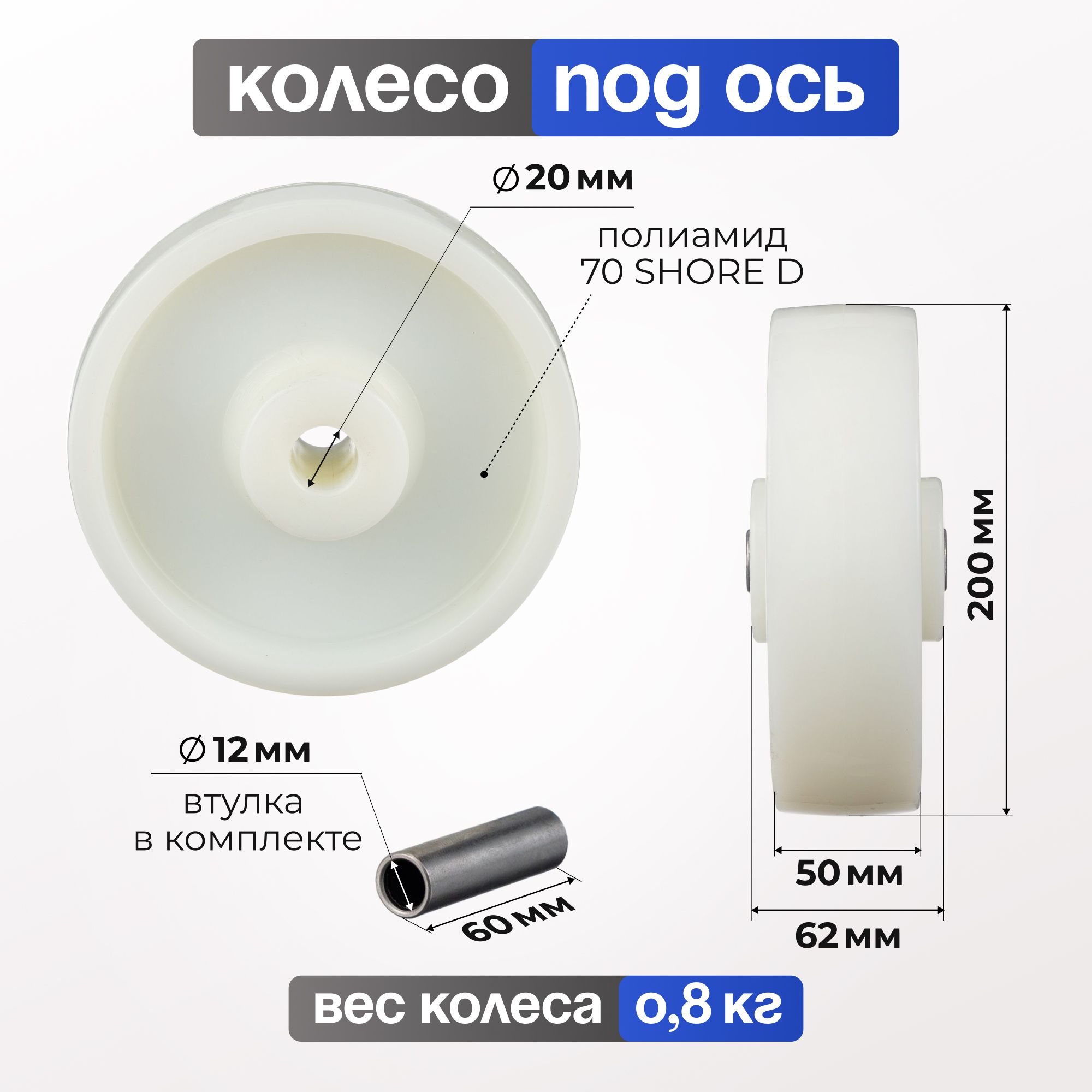 Колесо нейлоновое (200 мм, 600 кг) под ось Стелла-техник N48200PNYSW