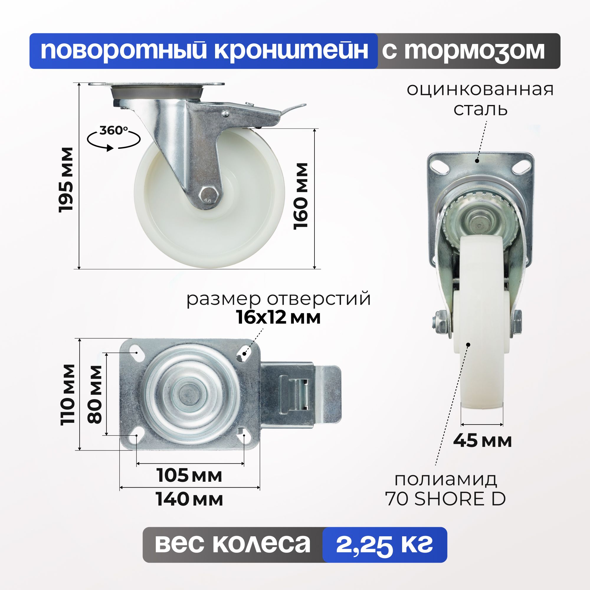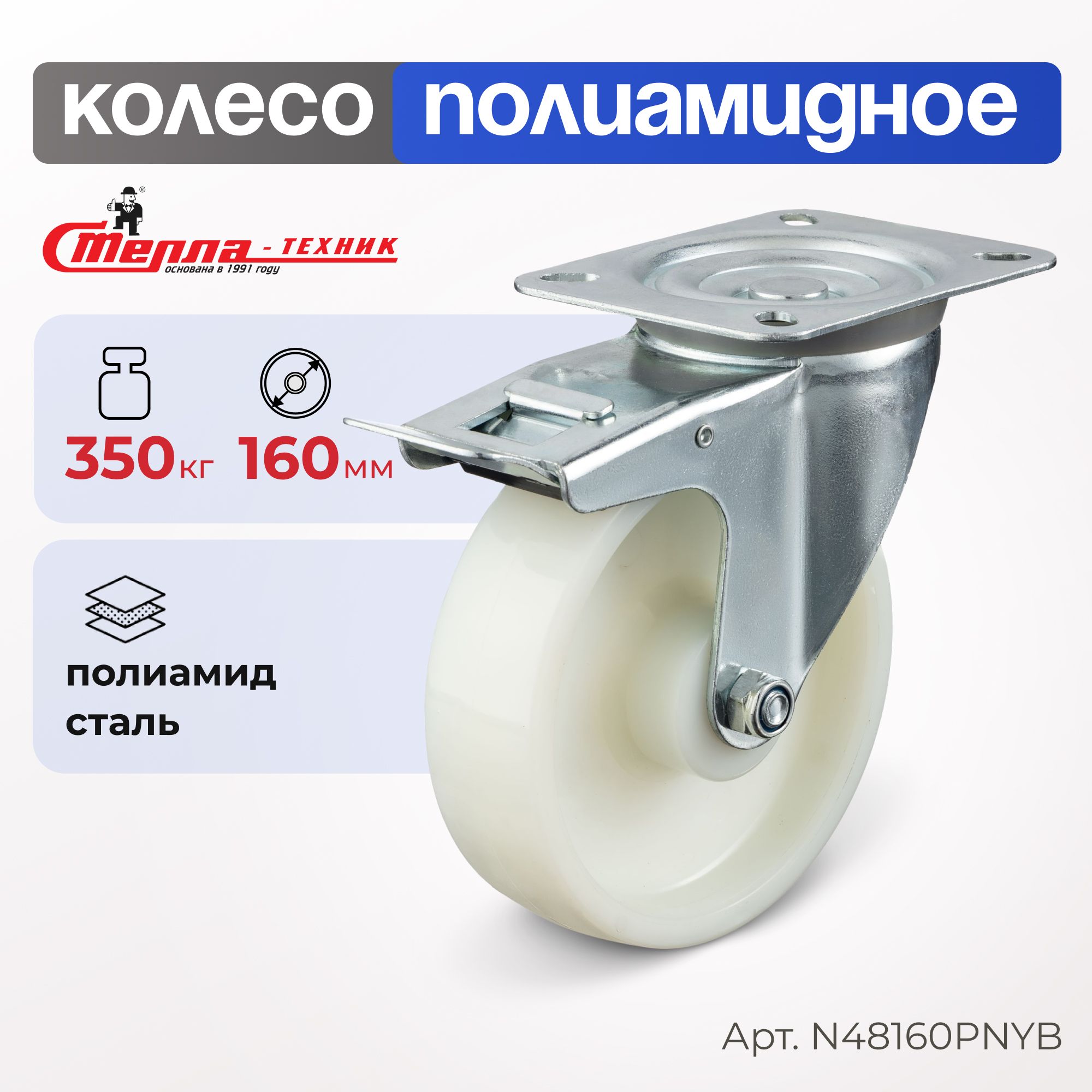 Колесо полиамидное (160 мм, 350 кг) поворотное с тормозом Стелла-техник N48160PNYB