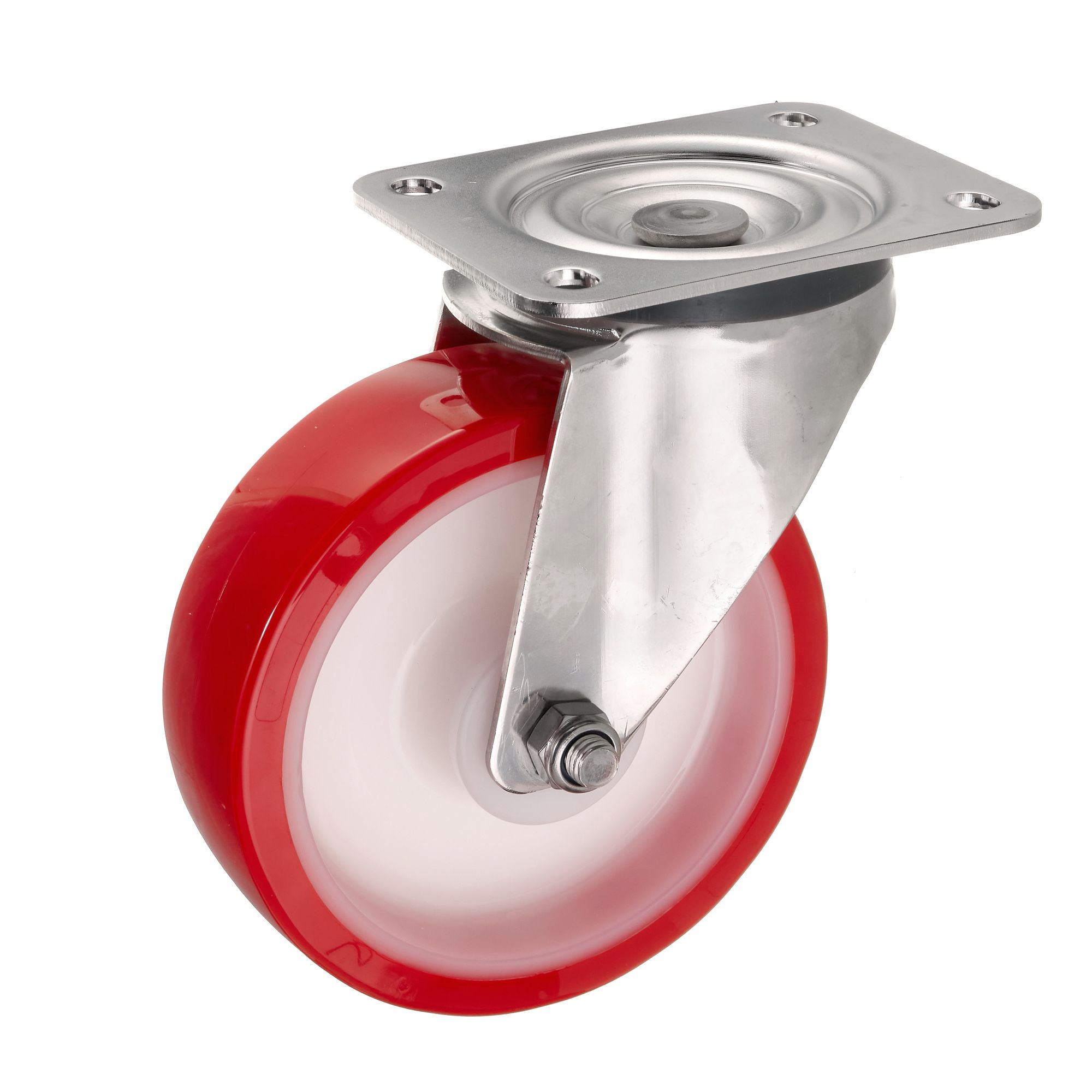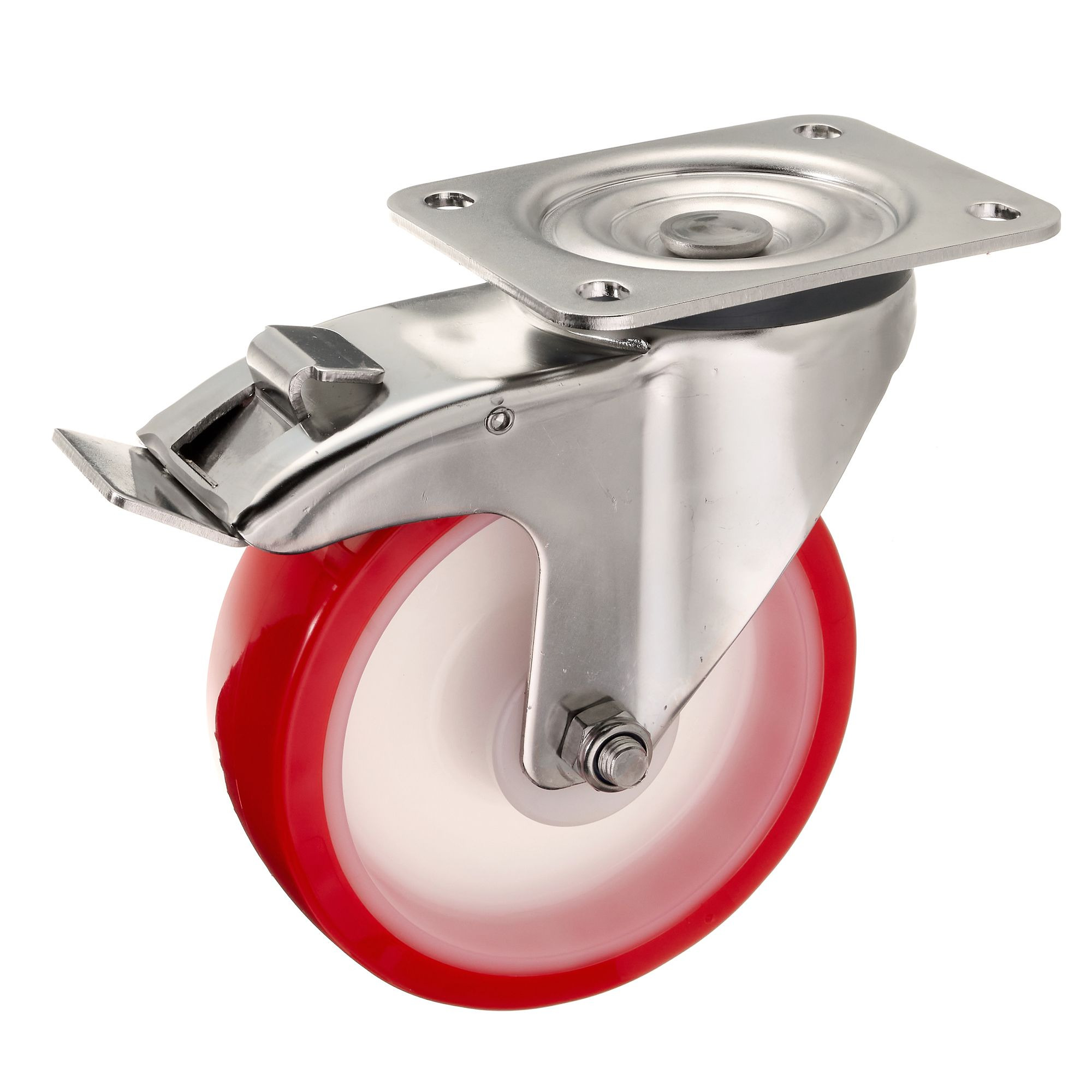 Применение: для оснащения транспортных тележек на предприятиях, где важны гигиеничность и надёжность - в пищевой и химической промышленности, а также в складских комплексах с особыми температурными режимами. Снижают уровень шума и вибраций при движении. Устойчивы к воздействию агрессивных сред. Допускается использование в холодильных и морозильных камерах.
