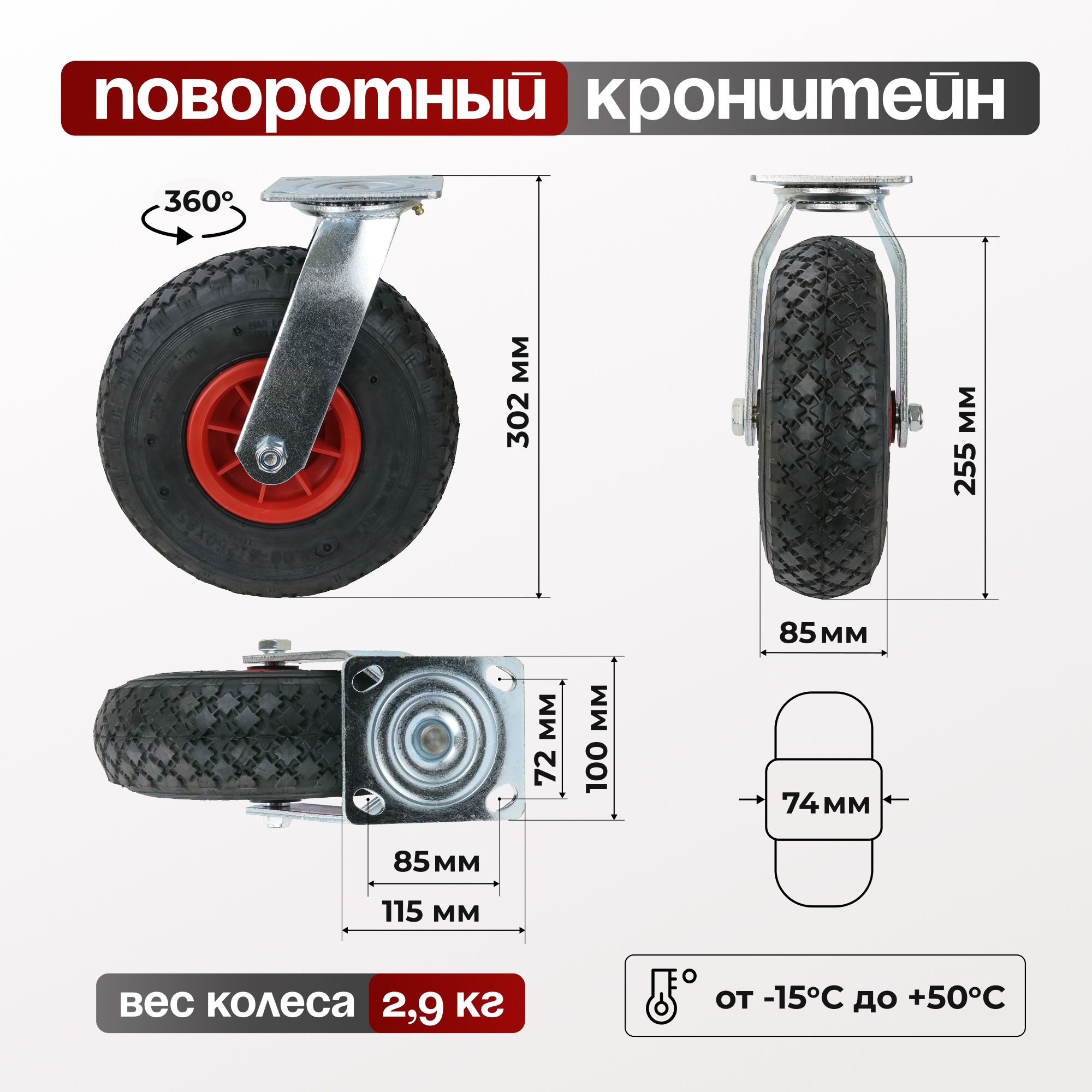 Колесо пневматическое (255 мм, 136 кг) поворотное Стелла-техник 1120-255-1-SW