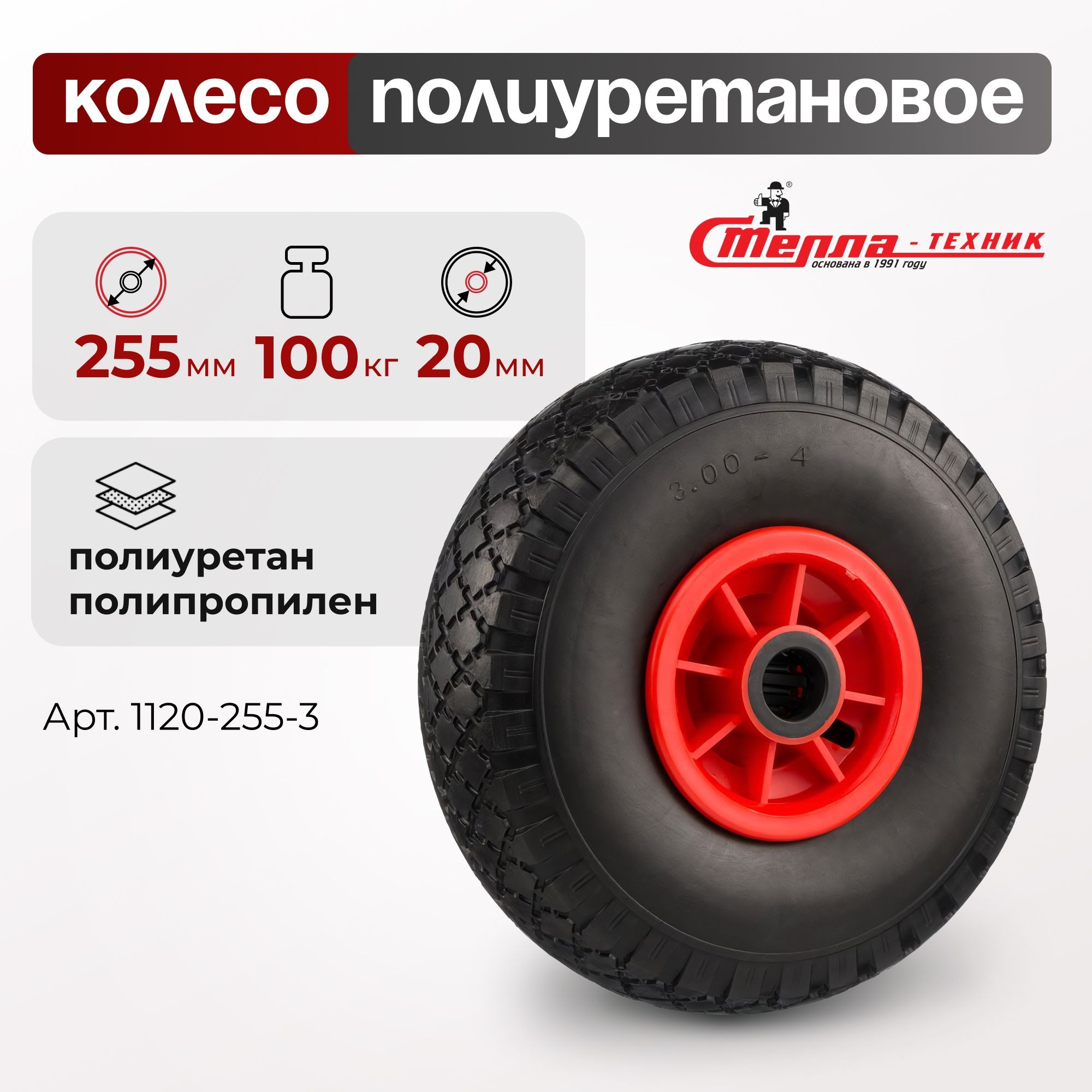 Колесо пенополиуретановое для тачки (255 мм, 100 кг, ось 20 мм) Стелла-техник 1120-255-3