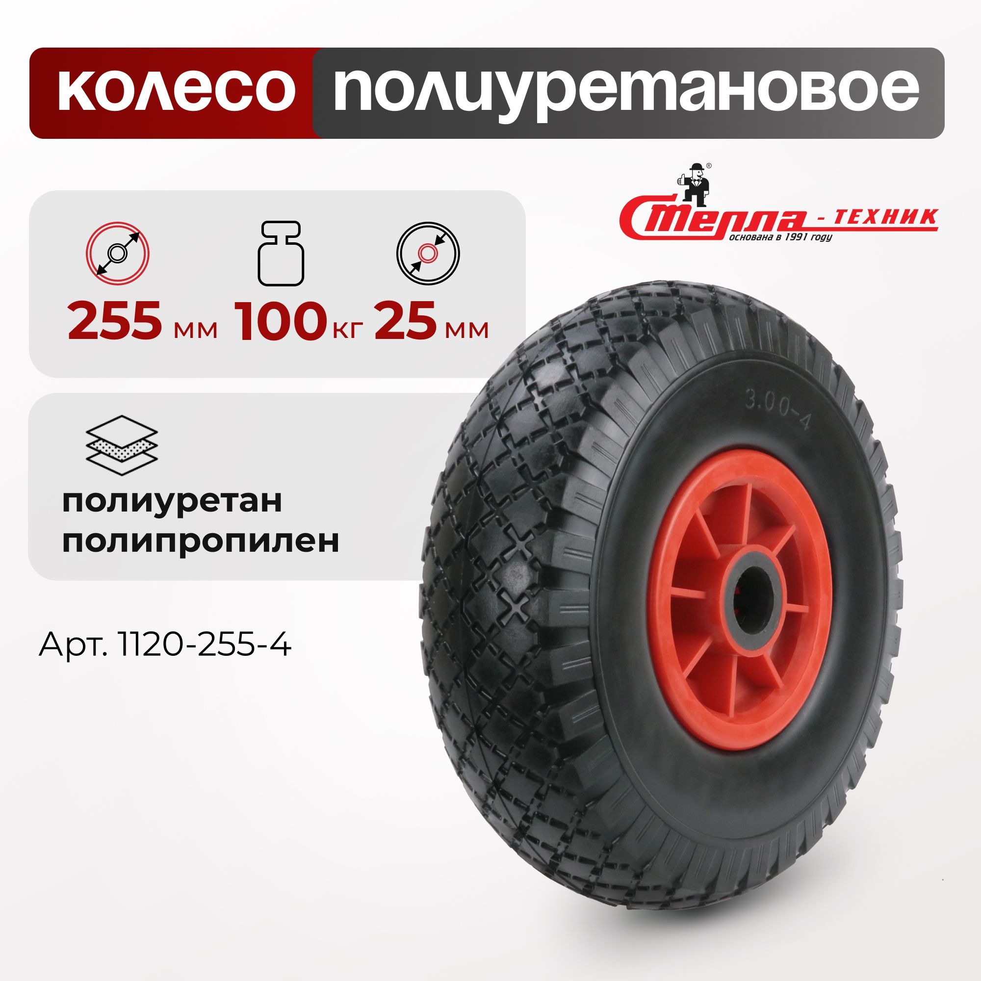 Колесо пенополиуретановое для тачки (255 мм, 100 кг, ось 25 мм) Стелла-техник 1120-255-4