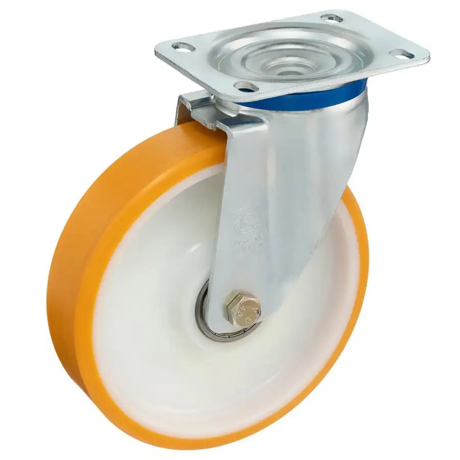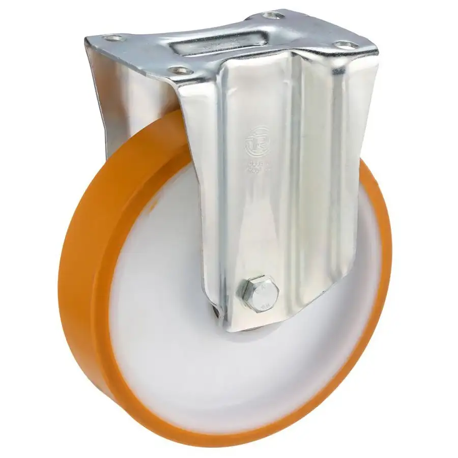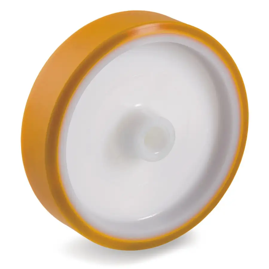 Колеса из полиуретана TR твердостью 95 Шор А. Основание из полиамида 6. Увеличенный коэффициент жесткости полиуретанового слоя, позволяет колесу выдерживать большие нагрузки.
