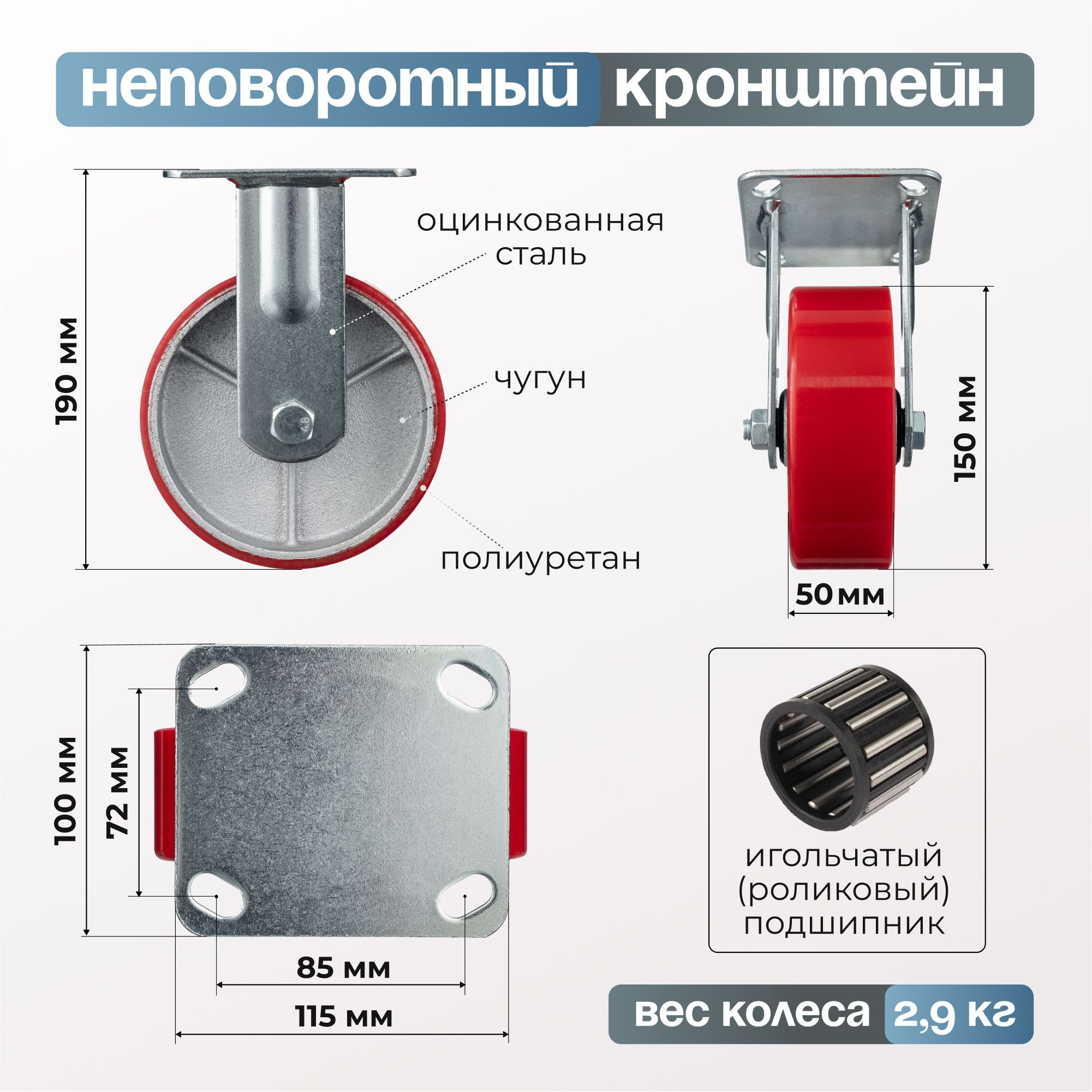 Колесо промышленное неповоротное кронштейн P 628516