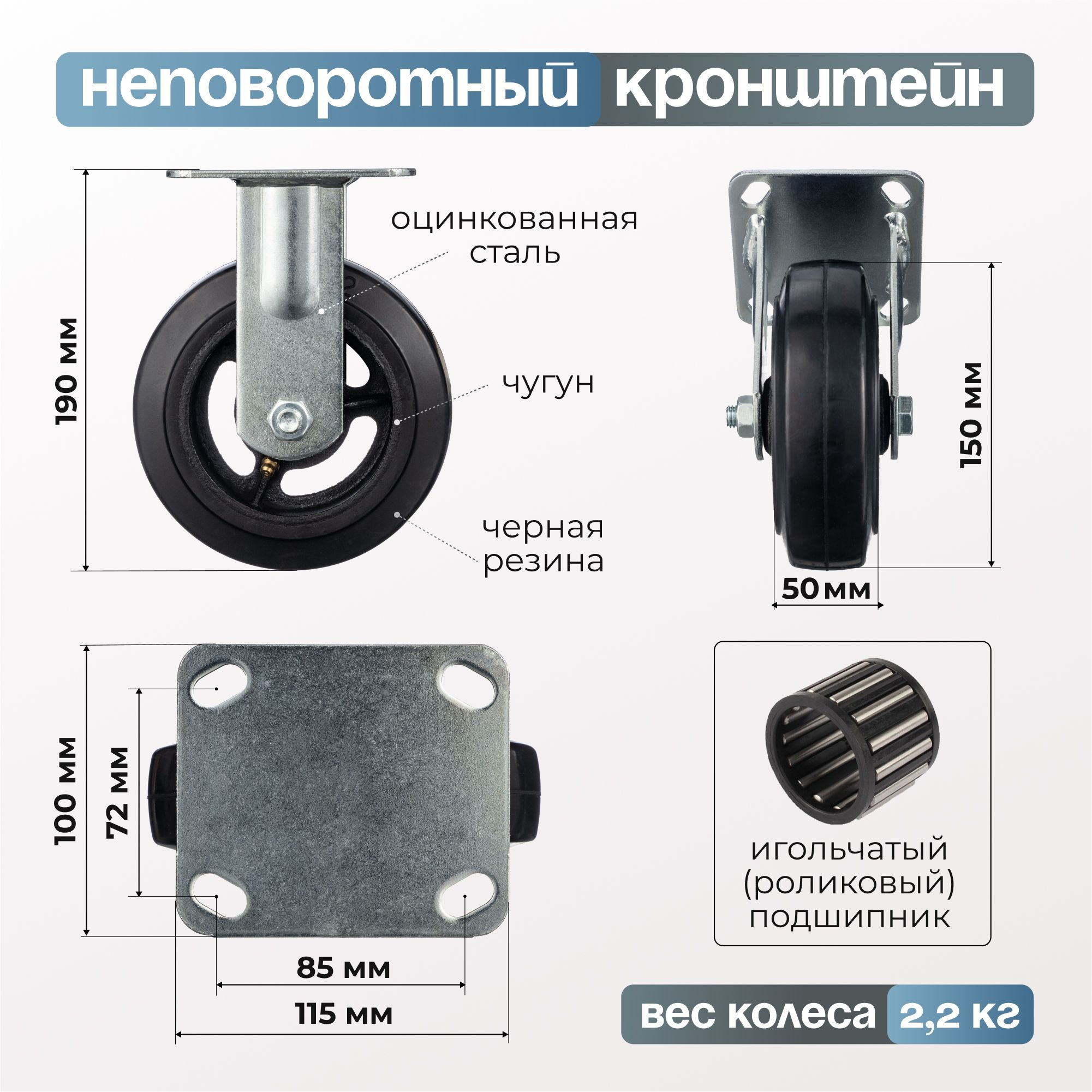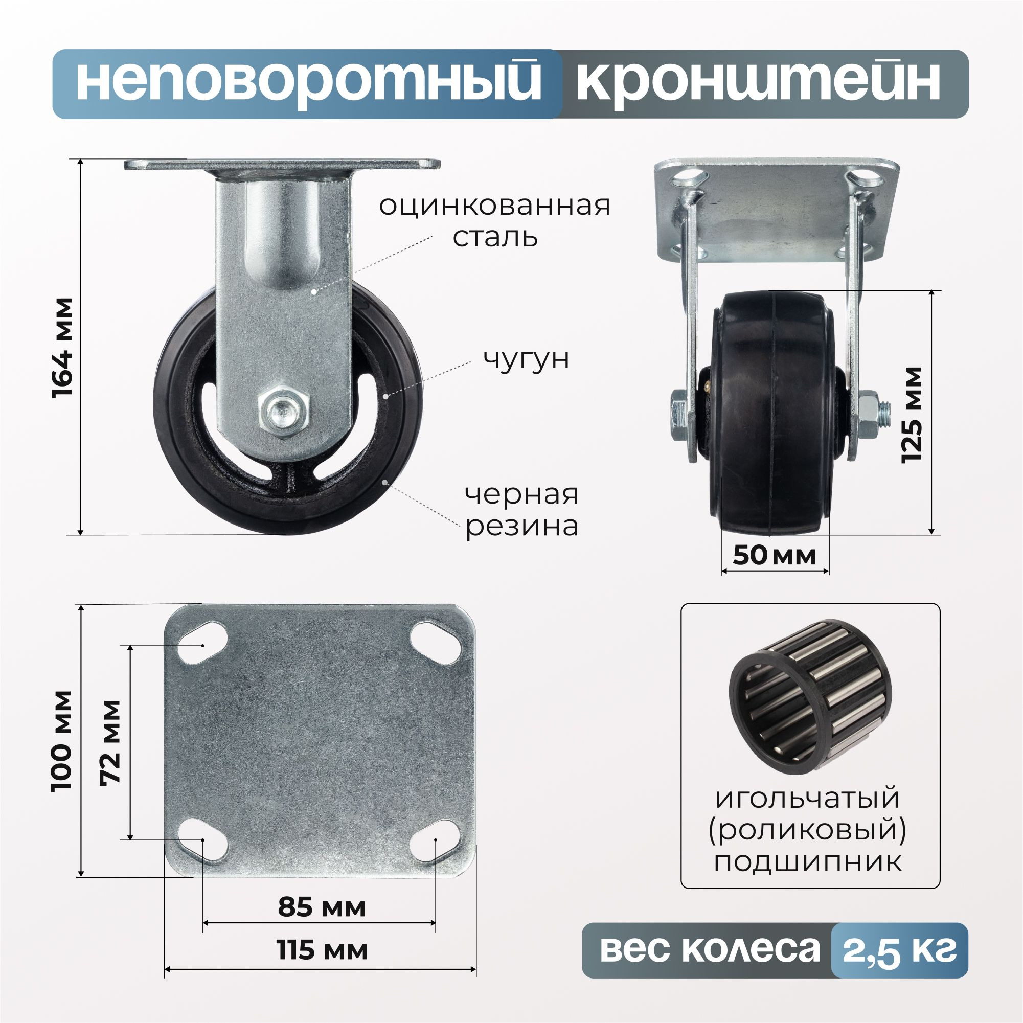 Колесо (125 мм, 230 кг) большегрузное неповоротное Стелла-техник 7202-125
