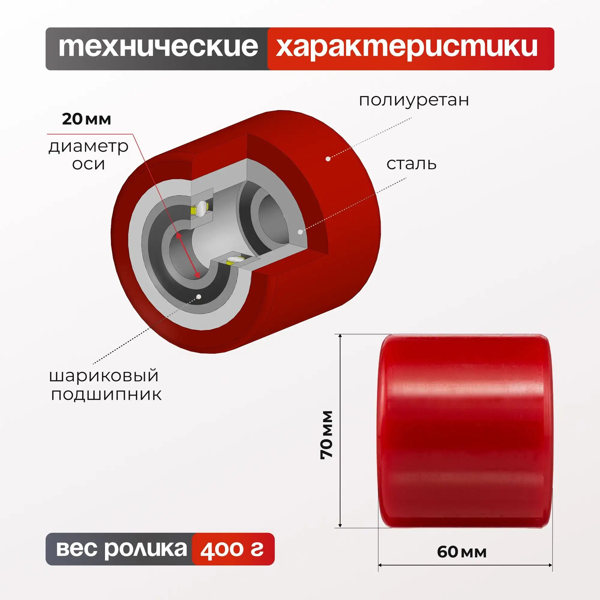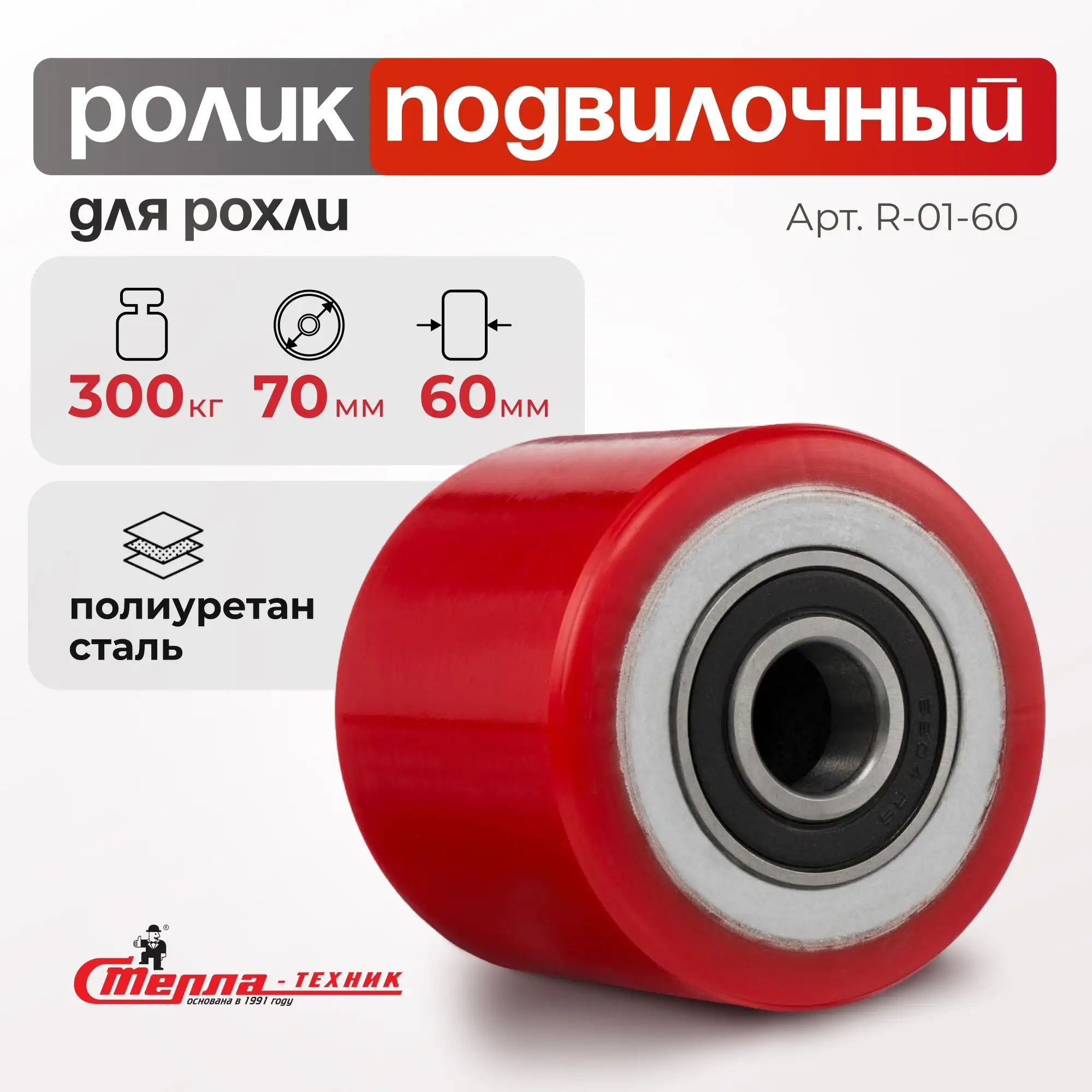 Ролик полиуретановый (70х60 мм, 400 кг) Стелла-техник R-01-60