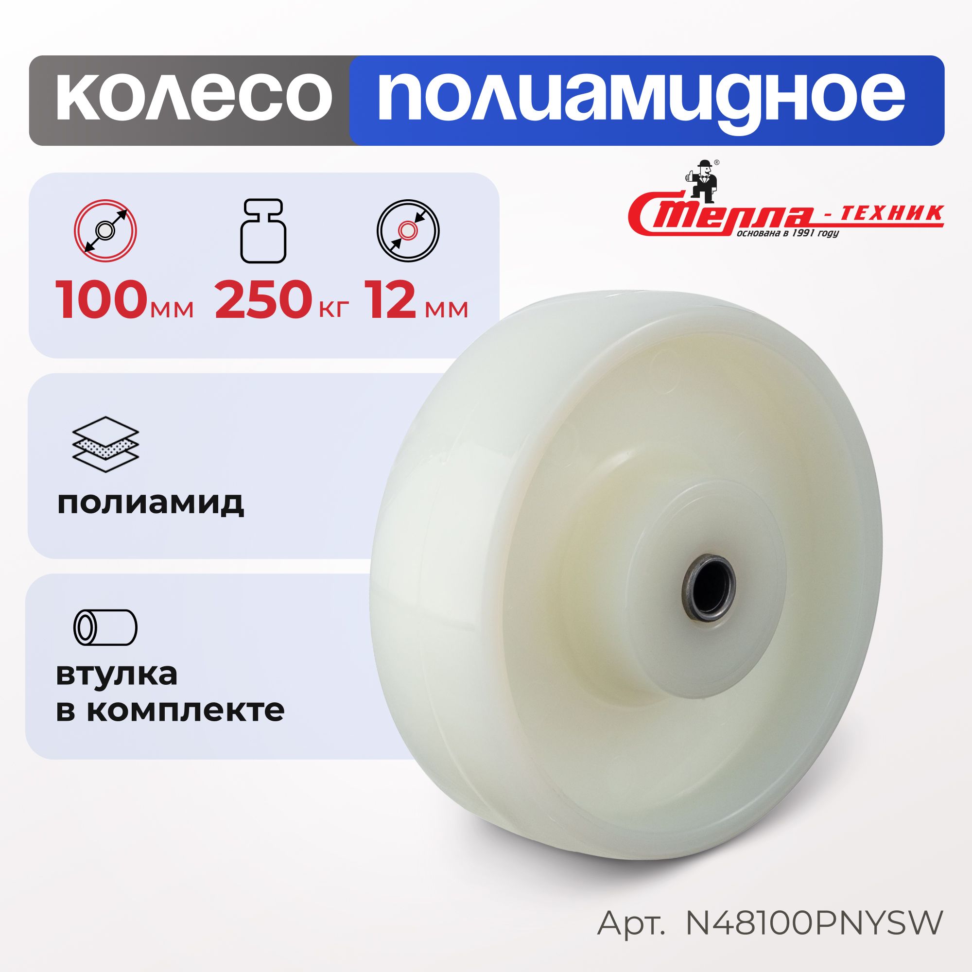 Колесо полиамидное (200 мм, 600 кг) под ось Стелла-техник N48200PNYSW