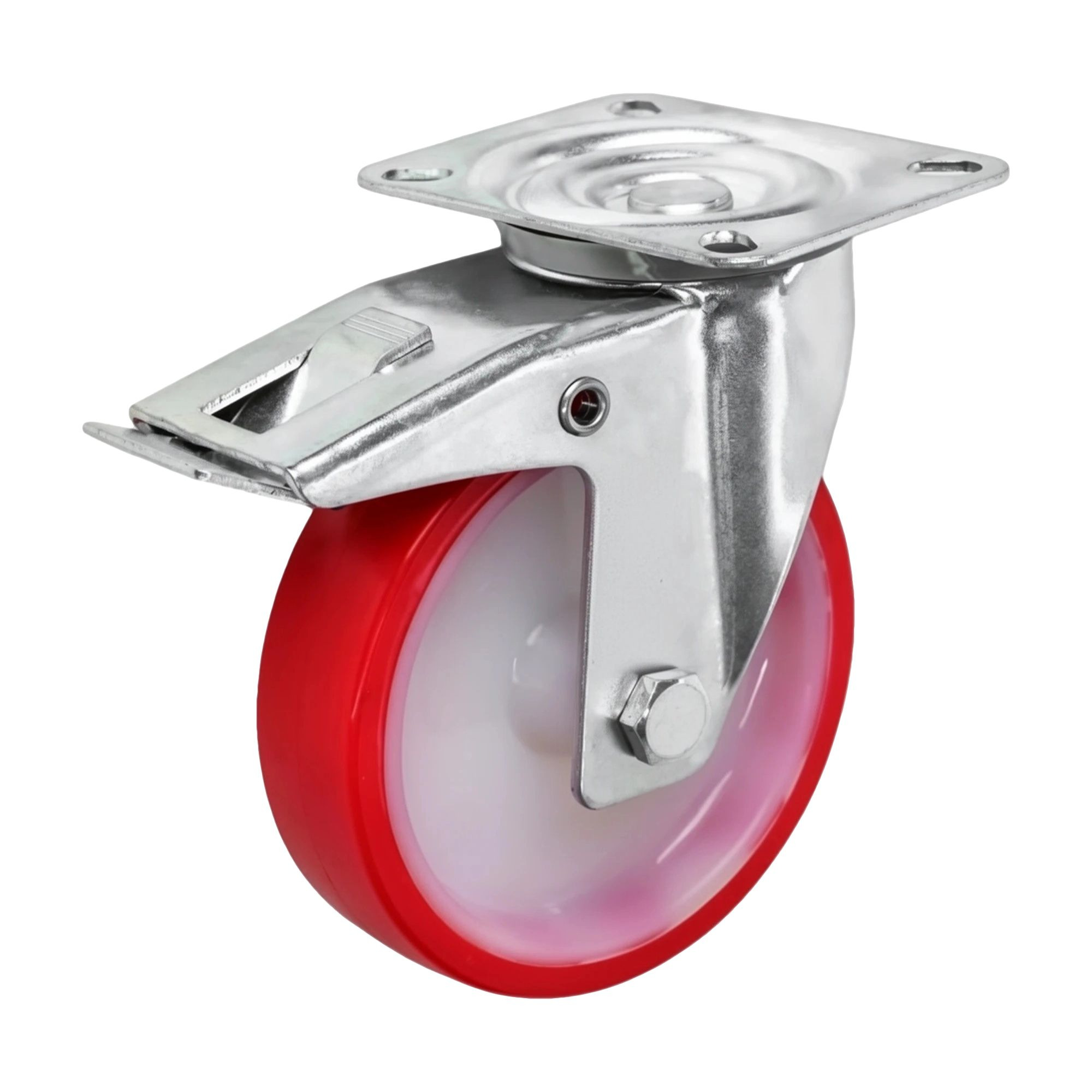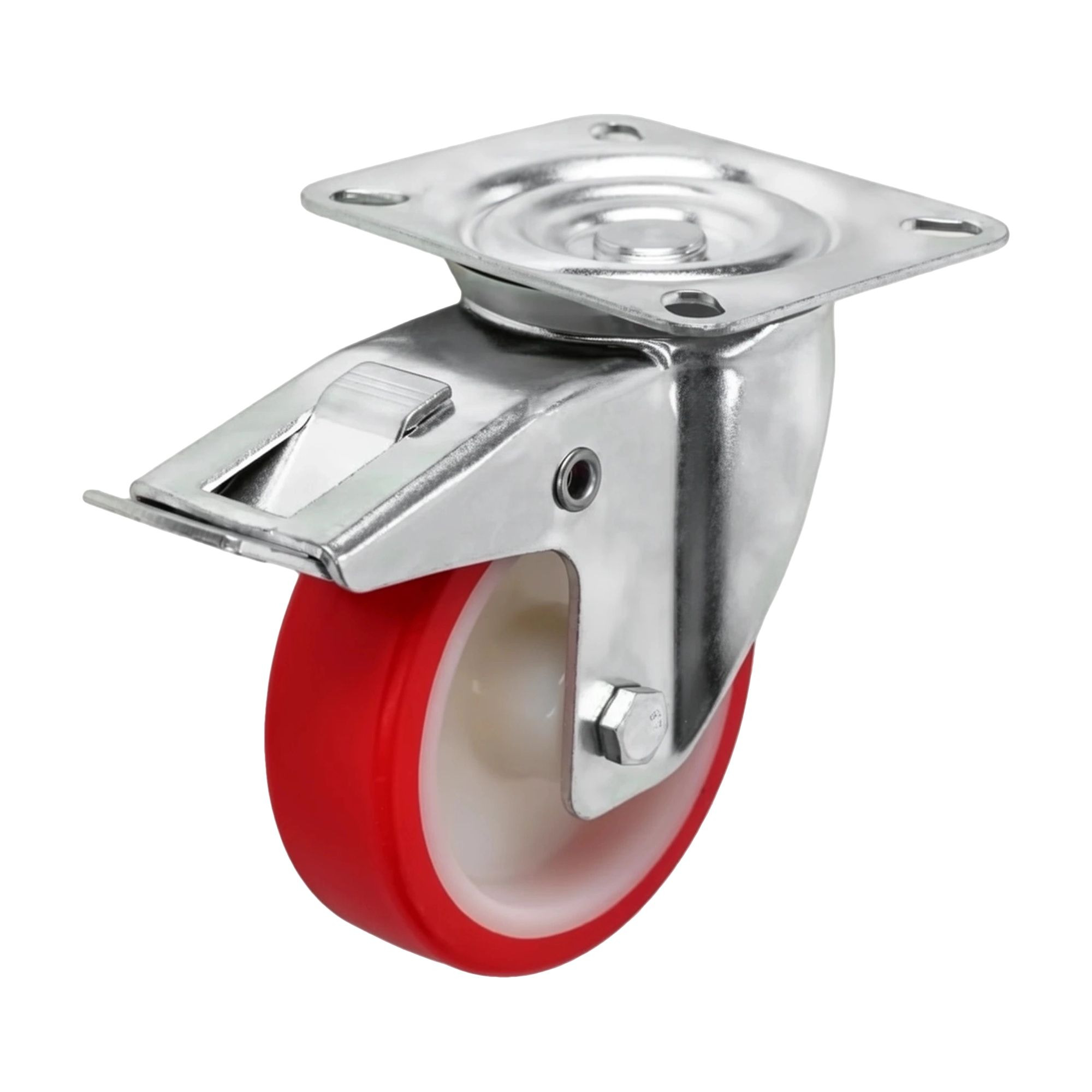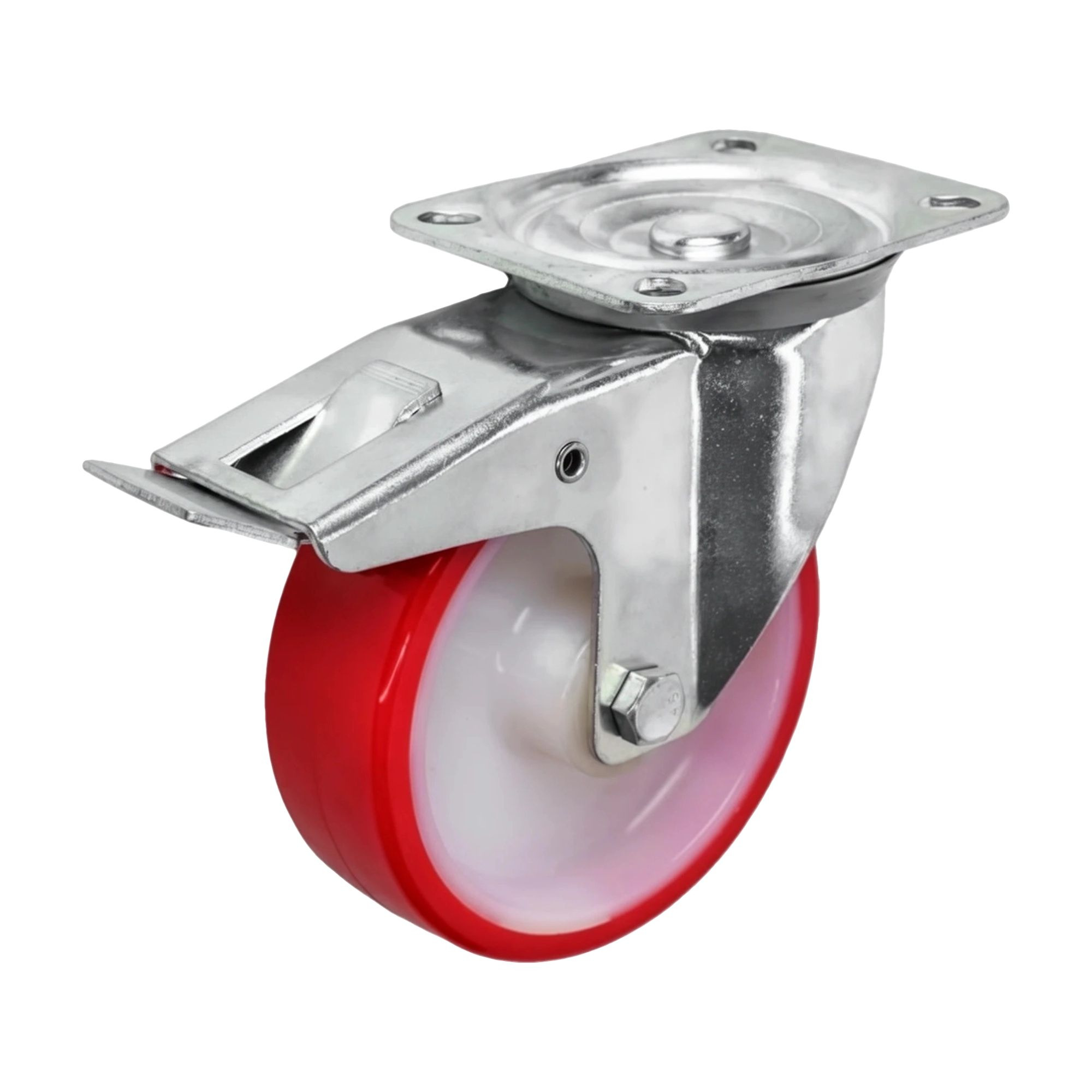 Колесо промышленное (100 мм, 130 кг) поворотное с тормозом полиуретановое Стелла-техник 6005-100