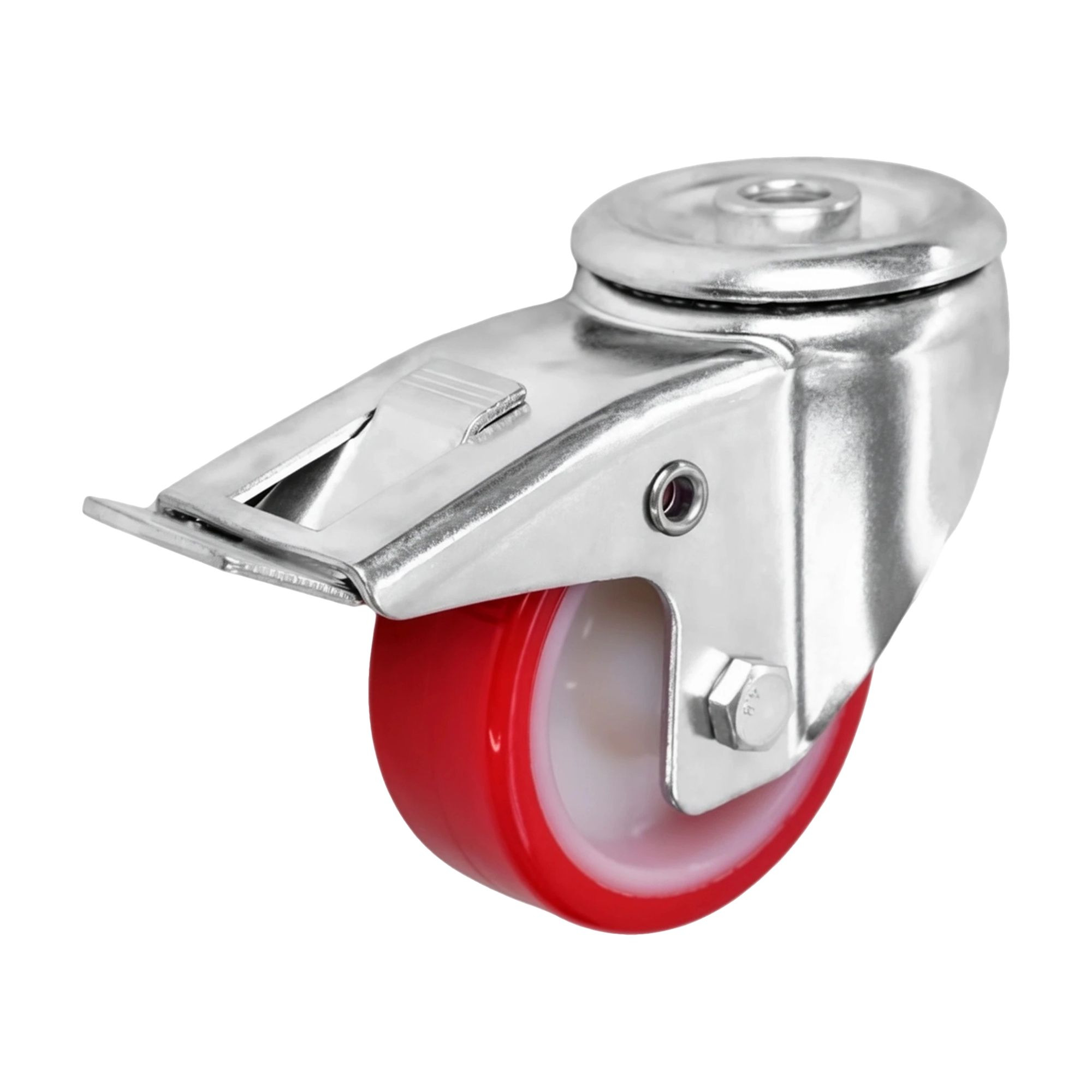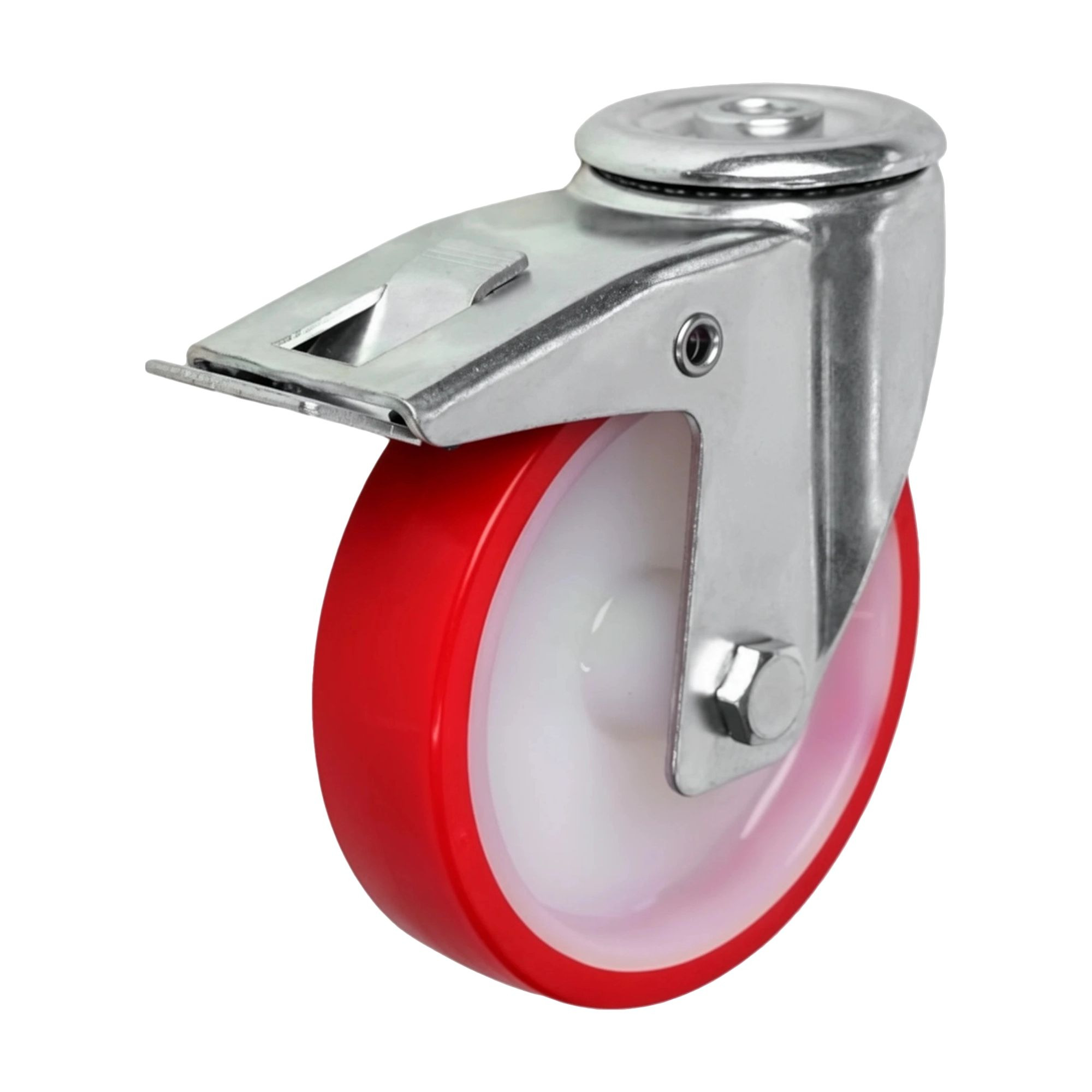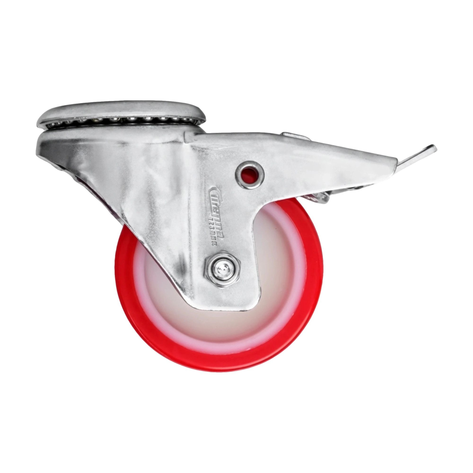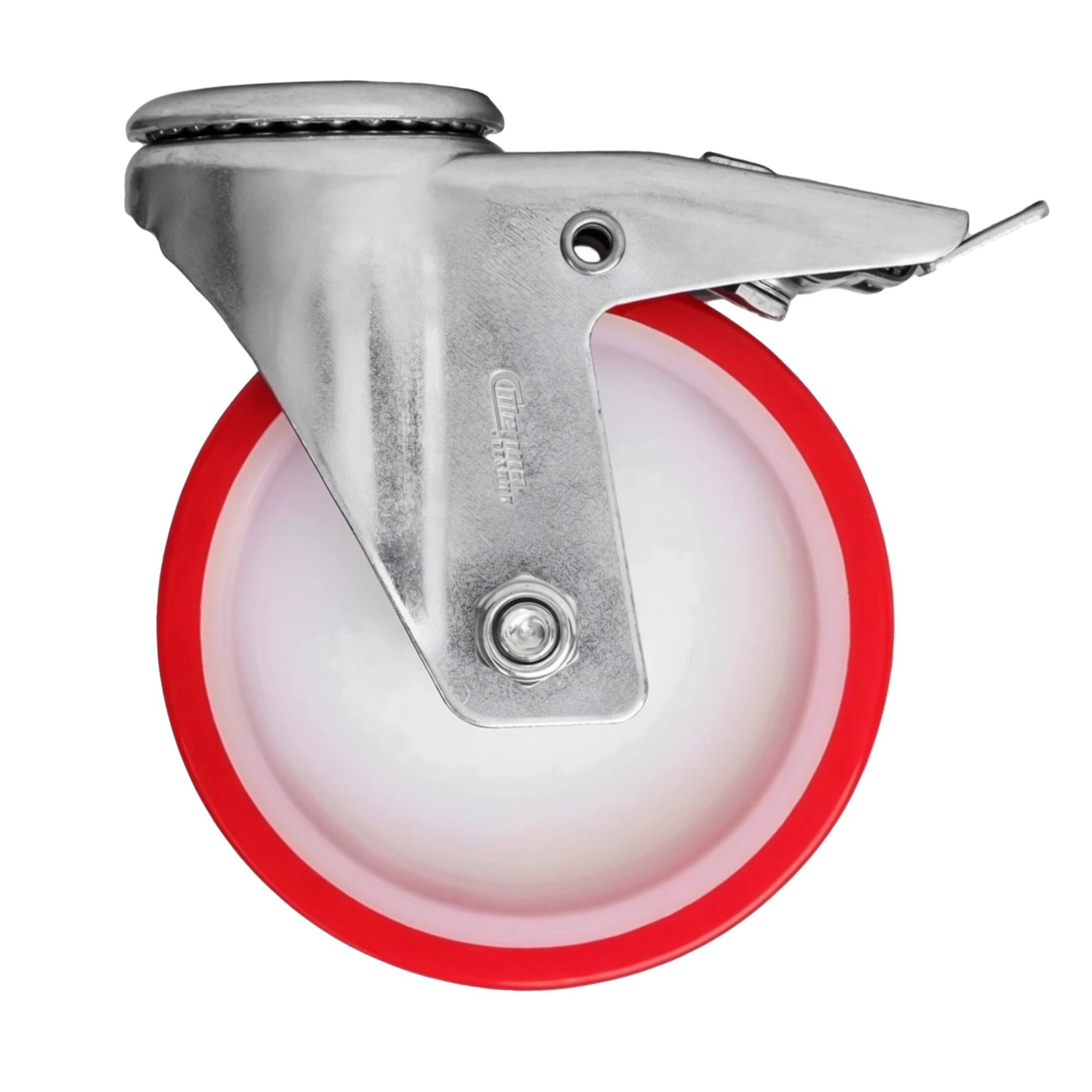Колесо поворотное из полиуретана и полиамида используется преимущественно для промышленного оборудования в пищевой и химической отраслях. Полиуретановое покрытие минимизирует шум и вибрацию, а также защищает напольные покрытия от повреждений. Легко поддаётся очистке и дезинфекции.
