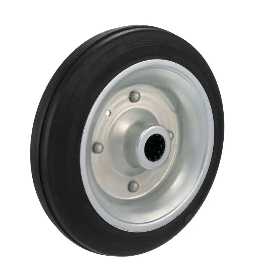 Промышленное колесо из черной резины со стальным центром, без кронштейна (под ось).