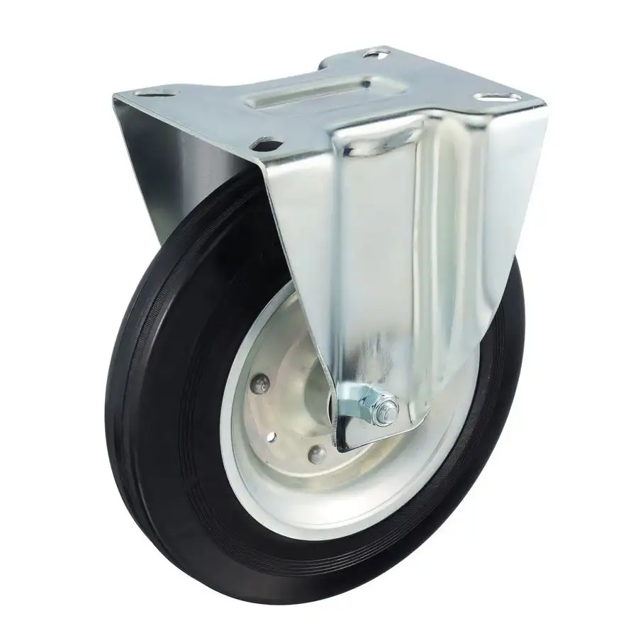 Промышленное неповоротное колесо из черной резины с сердечником из высококачественной стали.