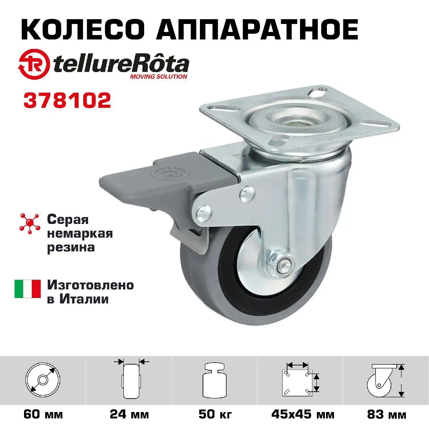 Колесо промышленное (60 мм; 50 кг) поворотное Tellure Rota, серая немаркая резина / полипропилен 374102
