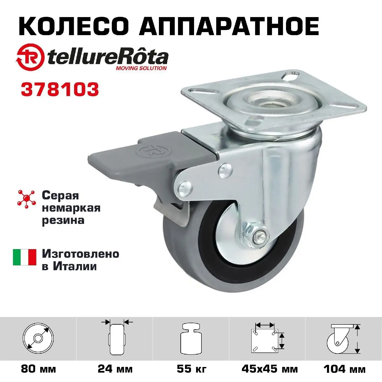 Колесо промышленное (80 мм; 55 кг) поворотное Tellure Rota, серая немаркая резина / полипропилен 378103