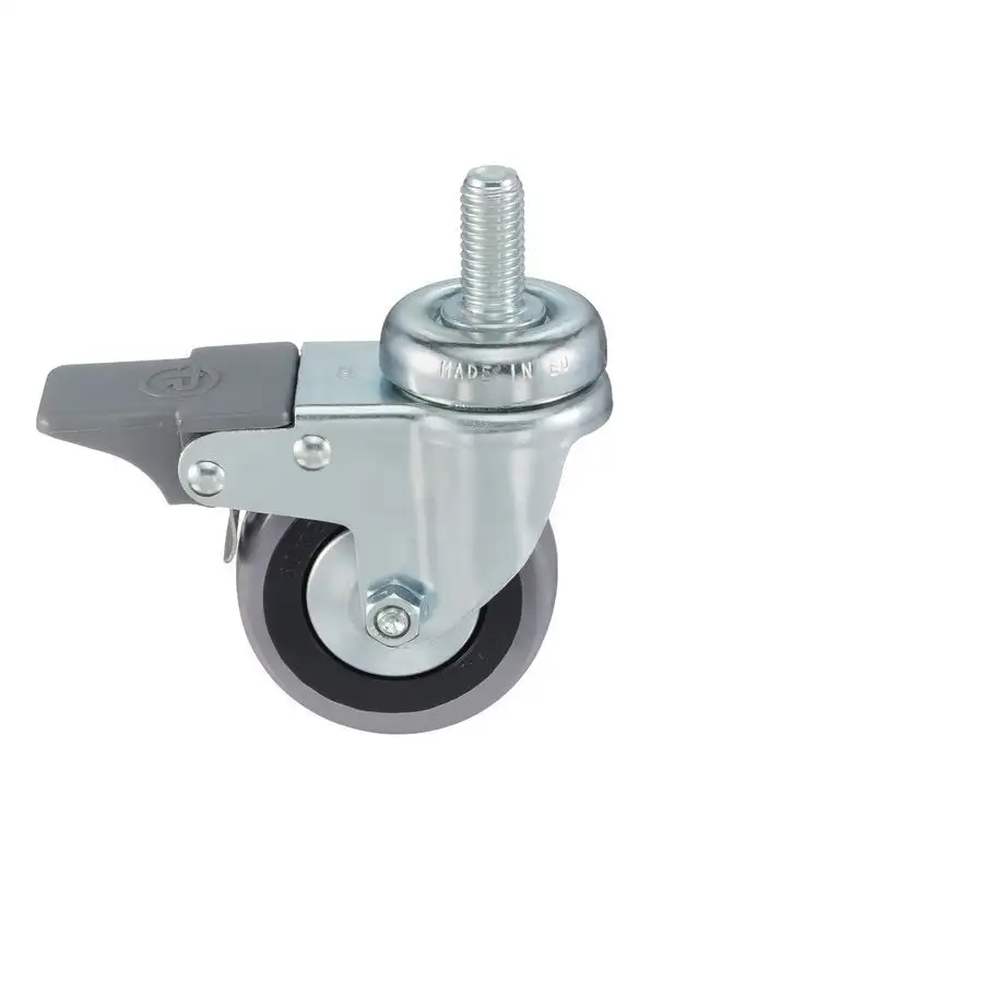 Колесо промышленное (125 мм; 80 кг) поворотное с тормозом Tellure Rota, серая немаркая резина / полипропилен 379102