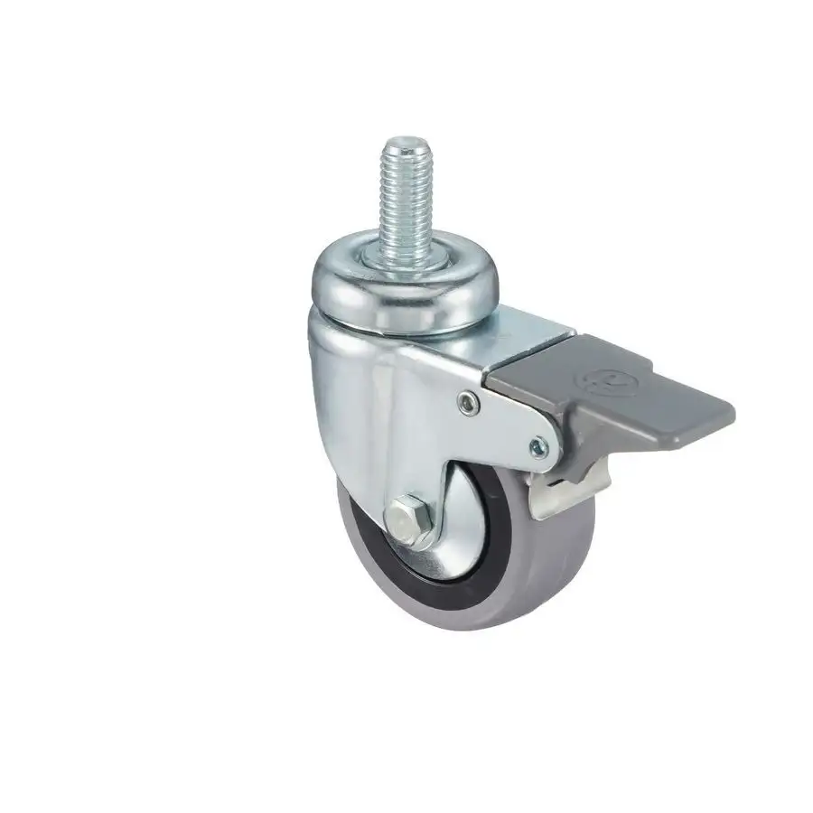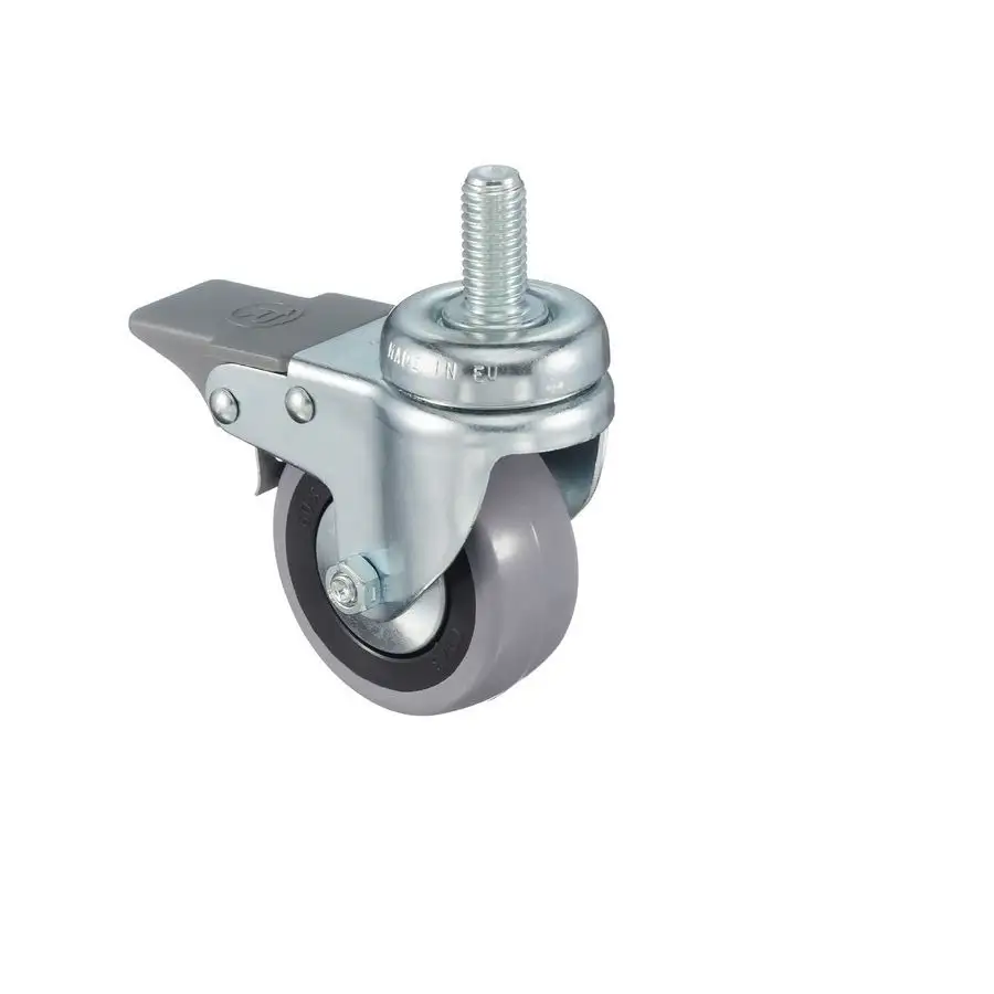 Колесо промышленное (125 мм; 80 кг) поворотное с тормозом Tellure Rota, серая немаркая резина / полипропилен 379103