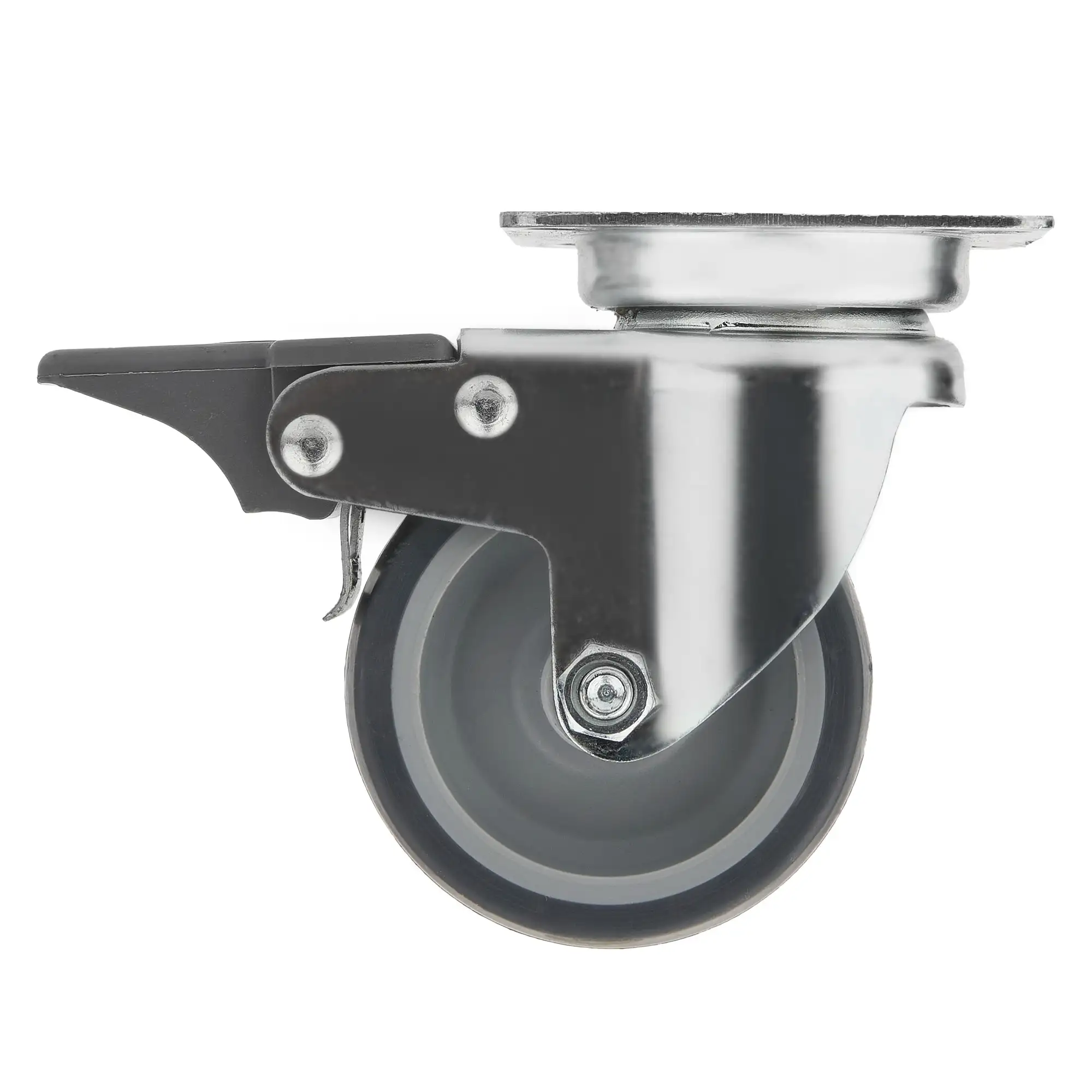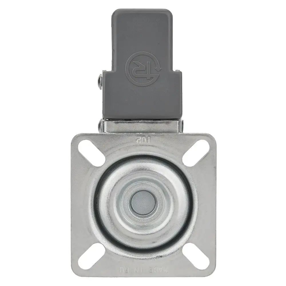 Колесо аппаратное (80 мм; 70 кг) поворотное с тормозом Tellure Rota, серая резина, сталь 388203