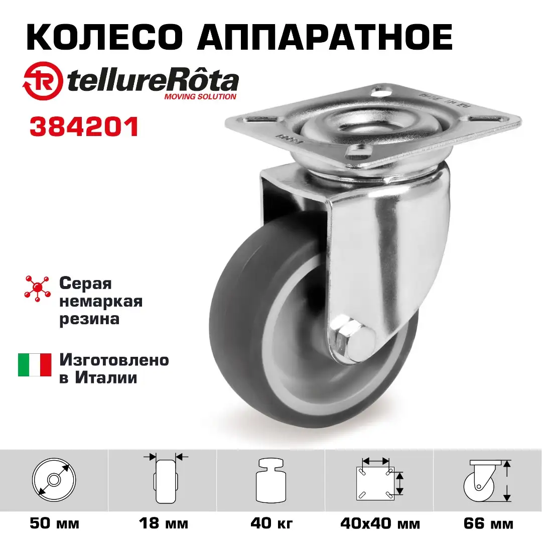 Колесо аппаратное (50 мм; 40 кг) поворотное Tellure Rota, серая резина, сталь 384201
