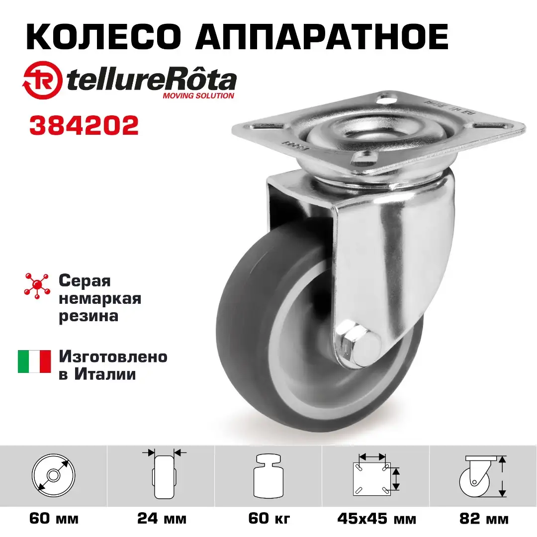 Колесо аппаратное (60 мм; 60 кг) поворотное Tellure Rota, серая резина, сталь 384202