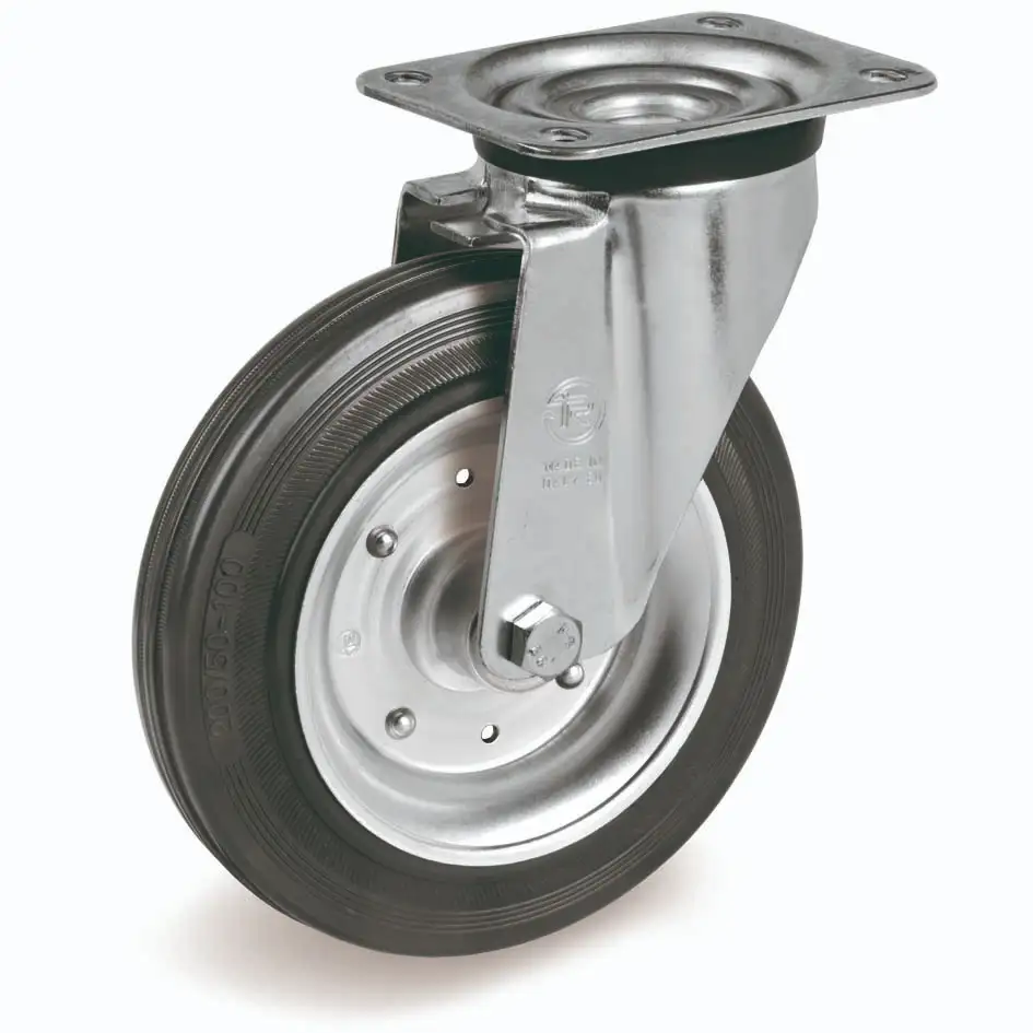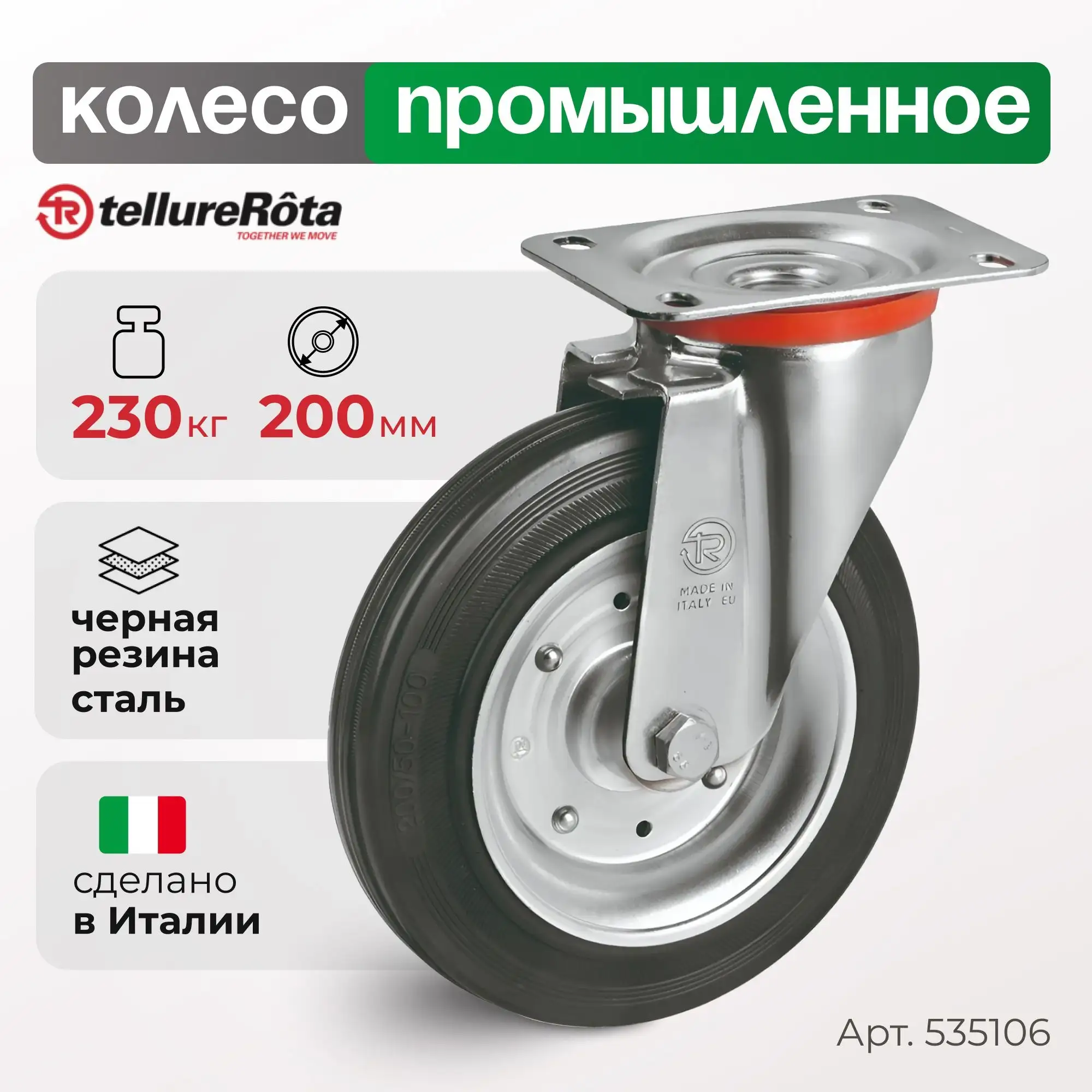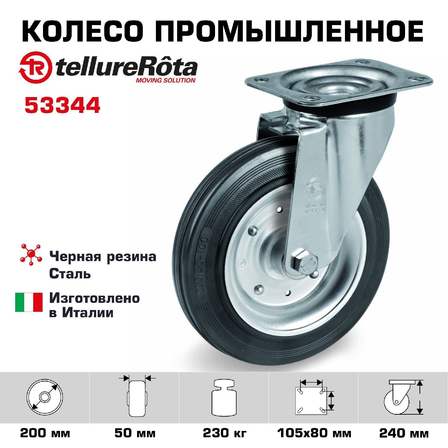 Колесо промышленное (200 мм, 230 кг) под ось Tellure Rota, черная резина, сталь 533106