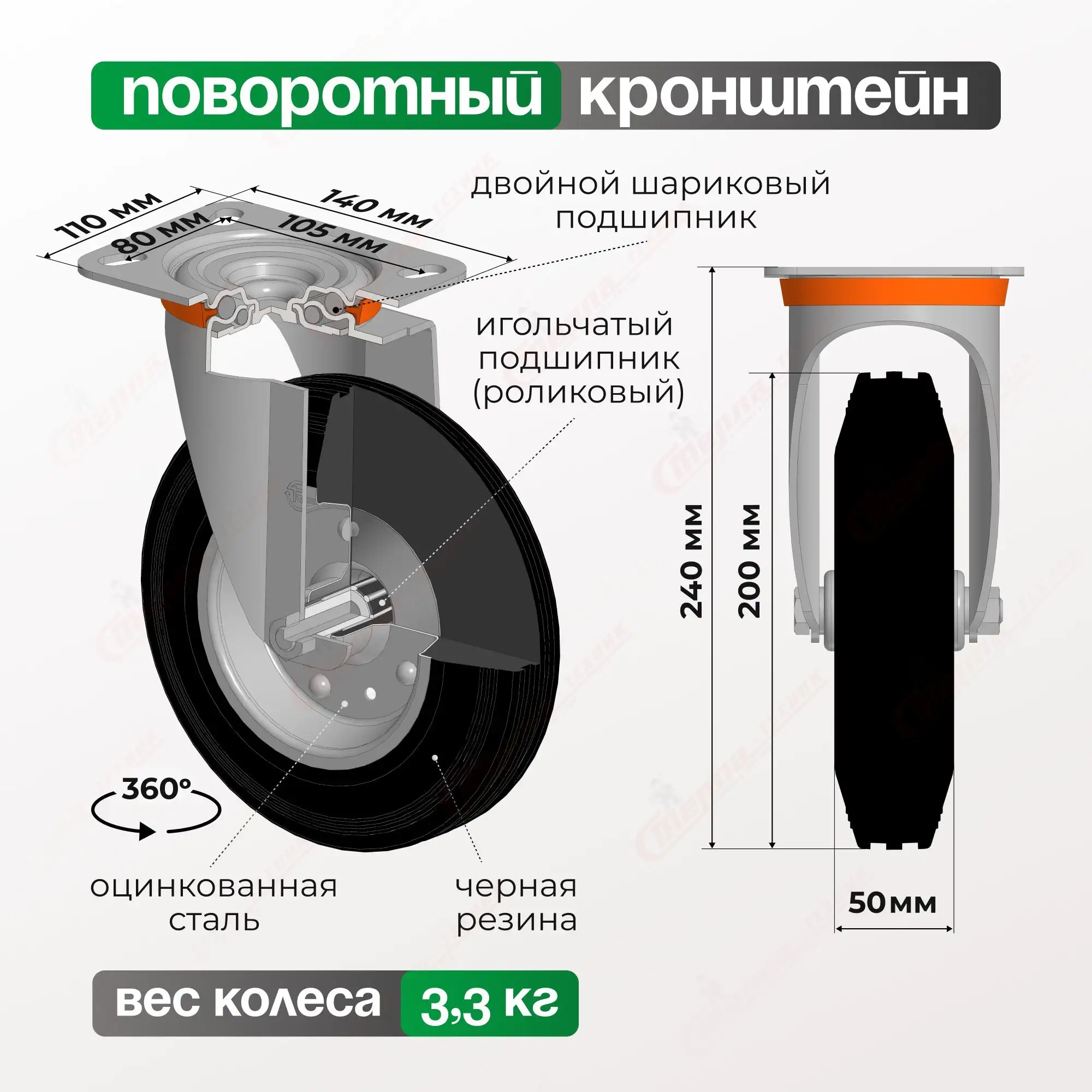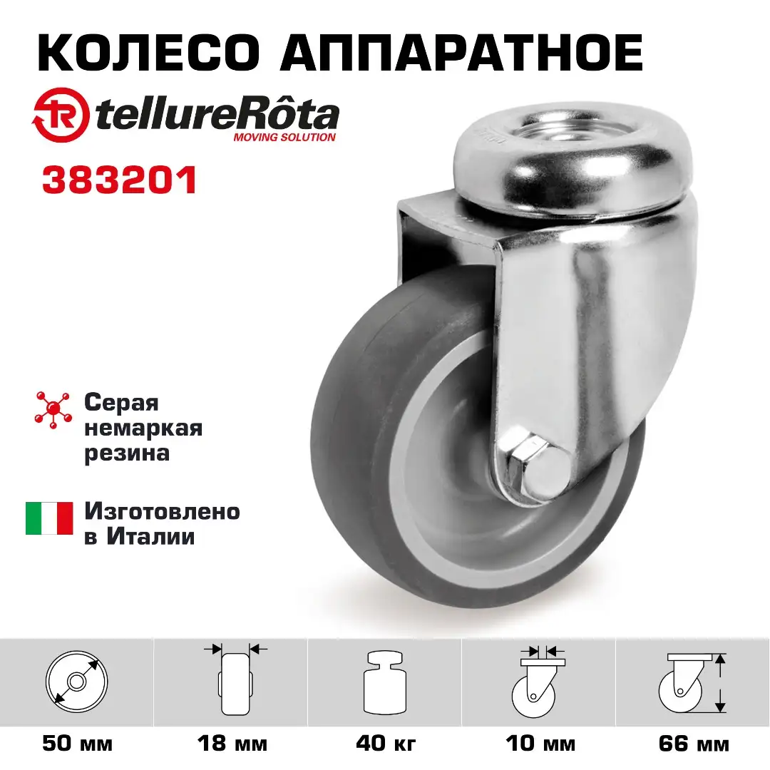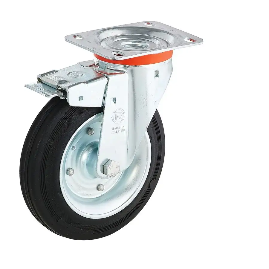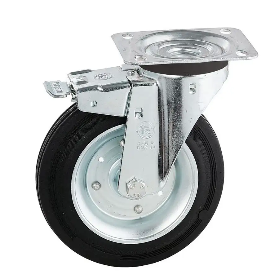 Колесо промышленное (200 мм, 230 кг) под ось Tellure Rota, черная резина, сталь 533106