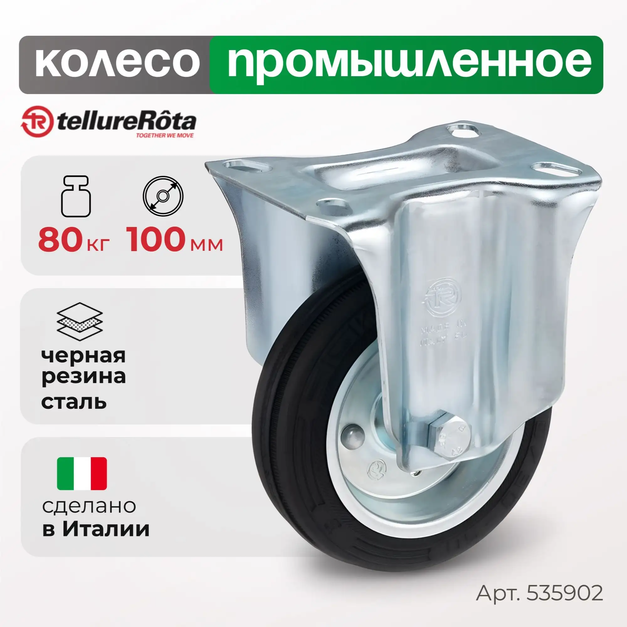 Колесо промышленное с тормозом Tellure Rota, черная резина, сталь 535422