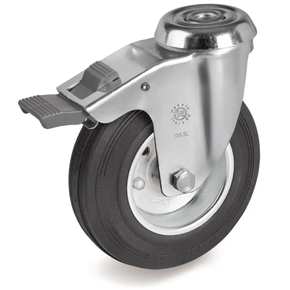 Колесо промышленное с тормозом Tellure Rota, черная резина, сталь 536202