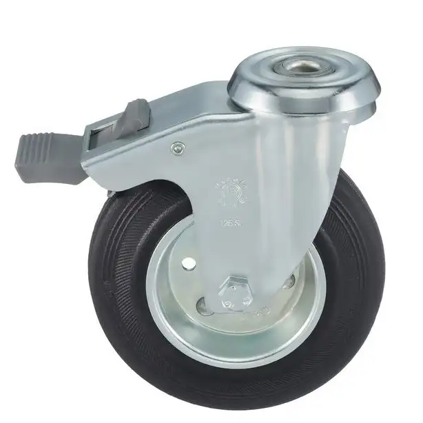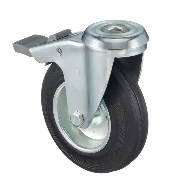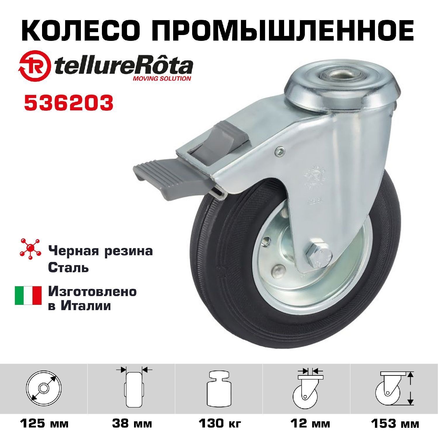 Колесо промышленное с тормозом Tellure Rota, черная резина, сталь 536203