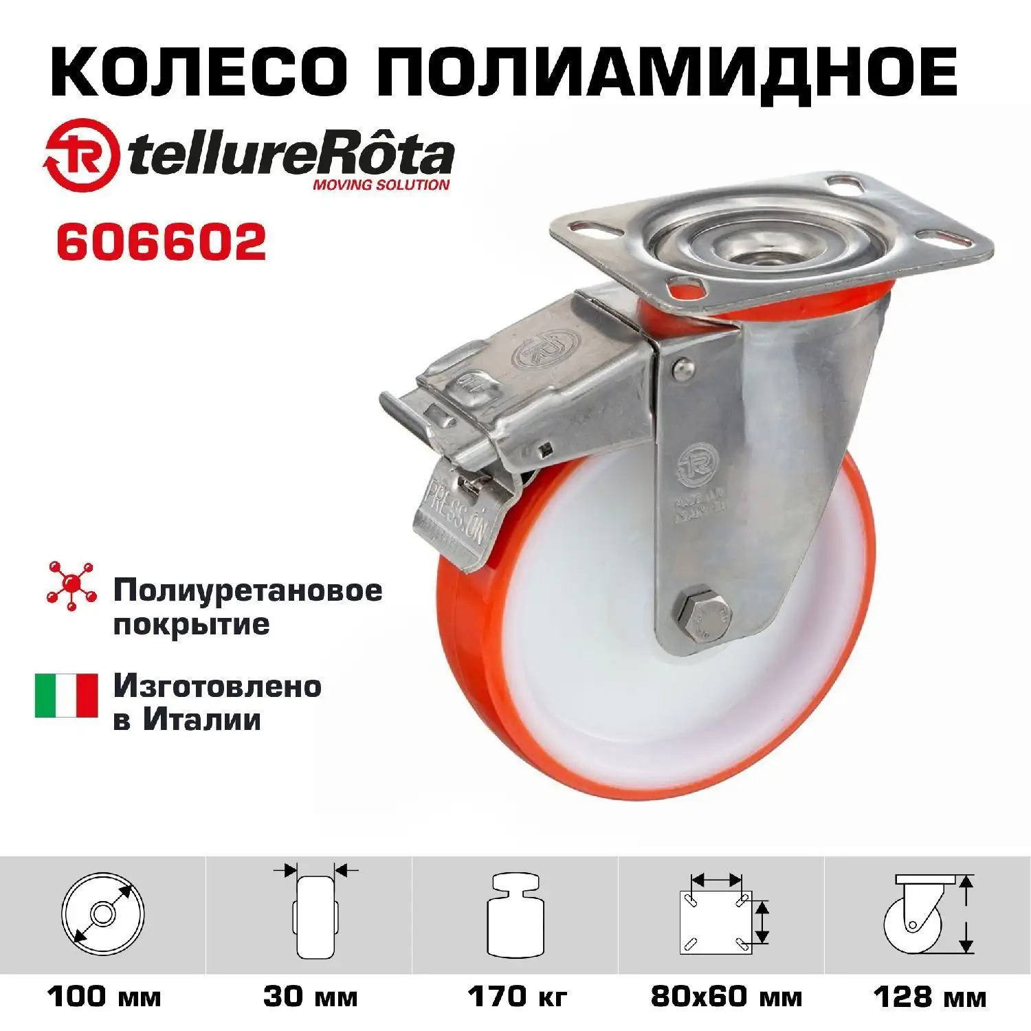Колесо промышленное (100 мм; 170 кг) под ось, полиуретан / полиамид 601102