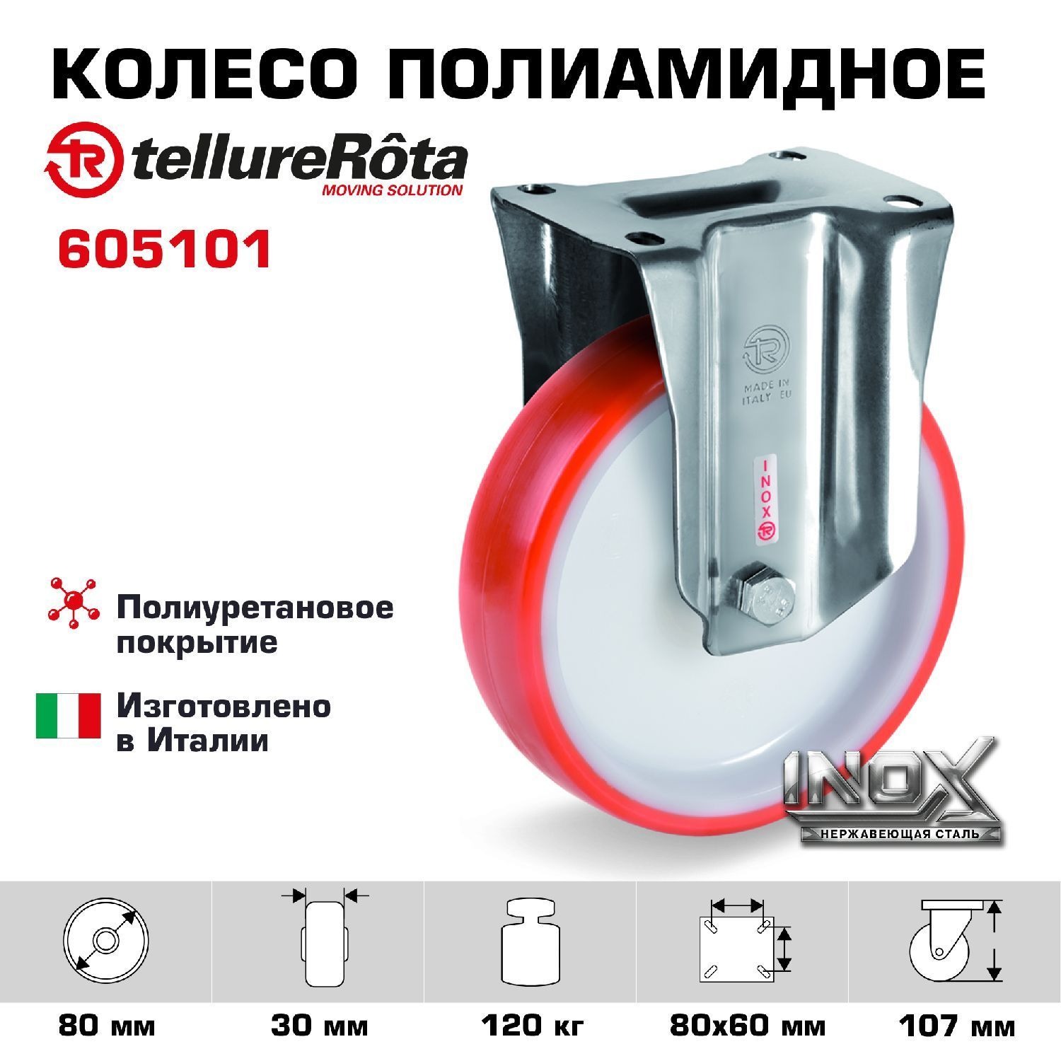 Полиуретановое колесо - надёжное решение для промышленного применения. Основа колеса выполнена из износостойкого полиамида 6, поверх которого нанесён слой термопластичного полиуретана твёрдостью 55 единиц по шкале Шора D. Поворотный кронштейн NLX из нержавеющей стали с площадкой крепления под 4 болта оснащён современным двухрядным подшипником для плавного вращения.