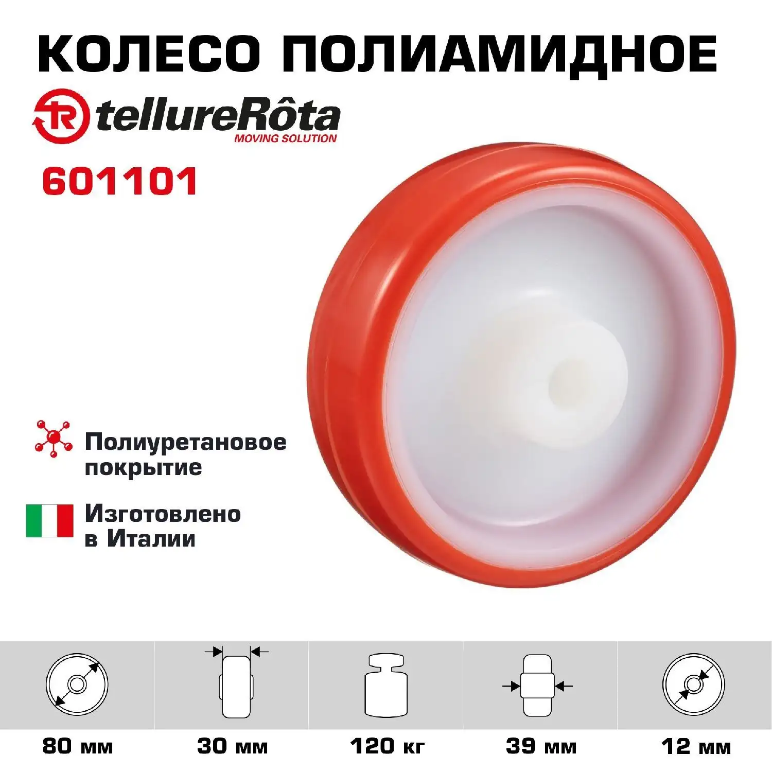 Колесо промышленное (80 мм; 120 кг) под ось, полиуретан / полиамид 601101
