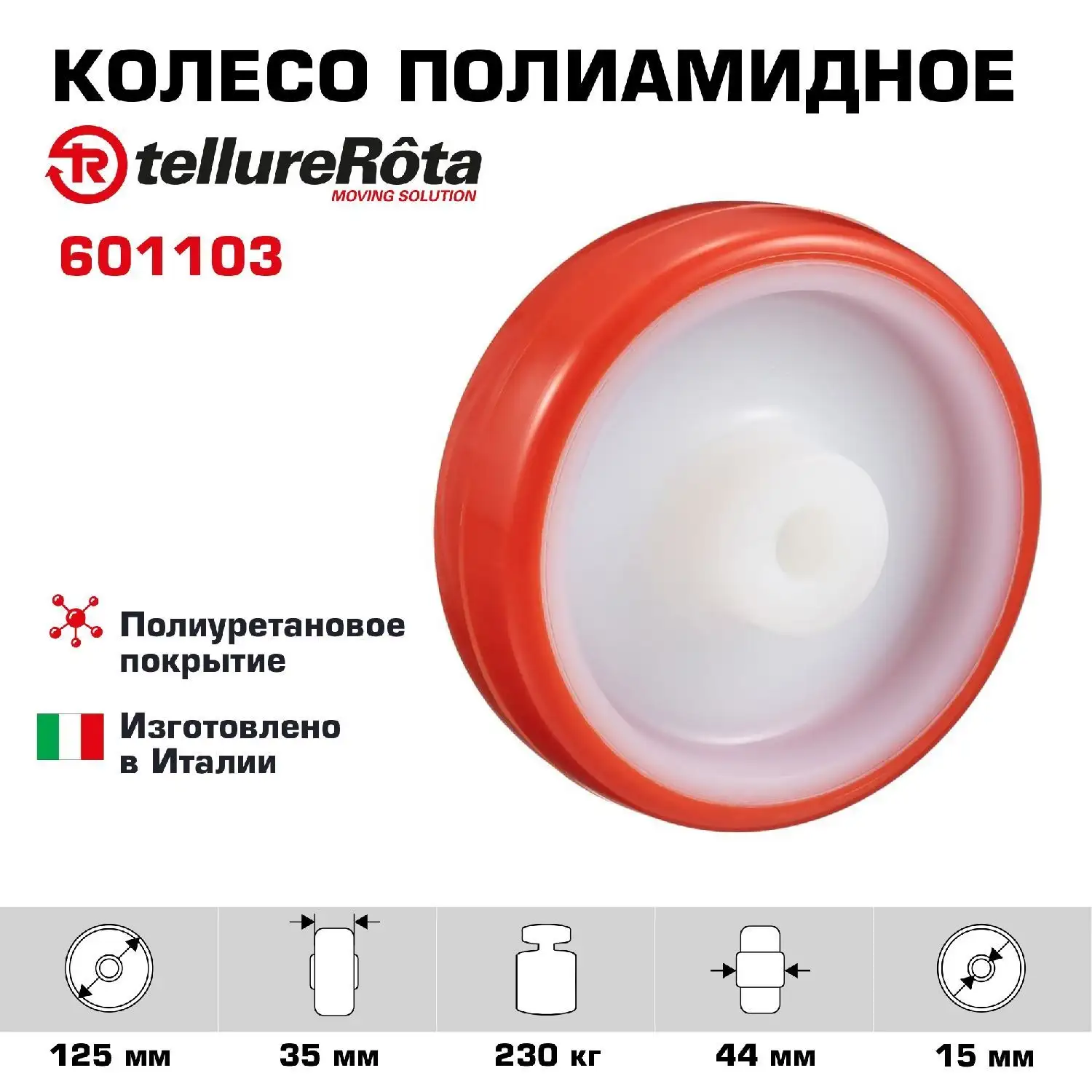 Колесо промышленное (125 мм; 230 кг) под ось, полиуретан / полиамид 601103