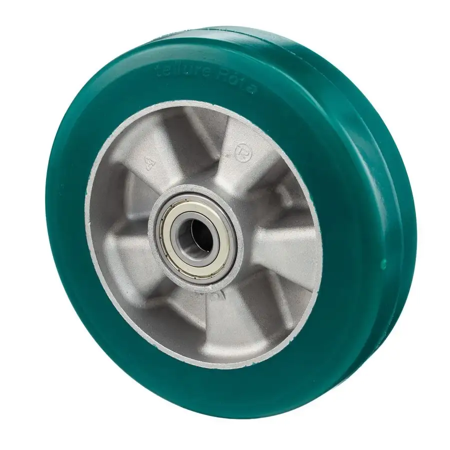 Колеса большегрузные из эластичного полиуретана твердостью 75 Шор А c основанием из алюминия.