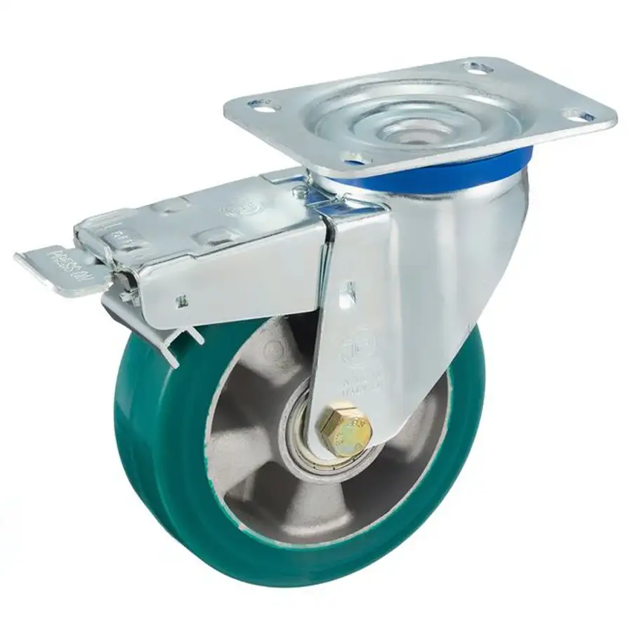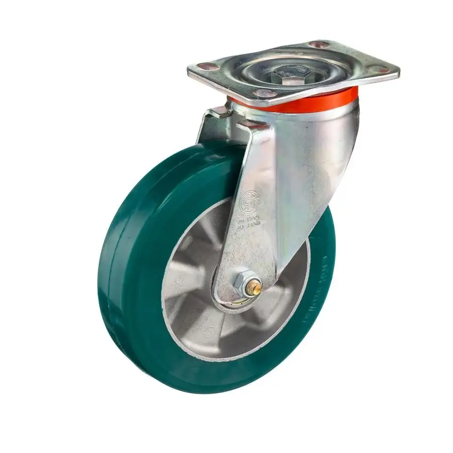 Колеса из эластичного полиуретана твердостью 75 Шор А с основанием из высококачественного алюминия, отлитого под давлением, с шариковым подшипником в комплекте.