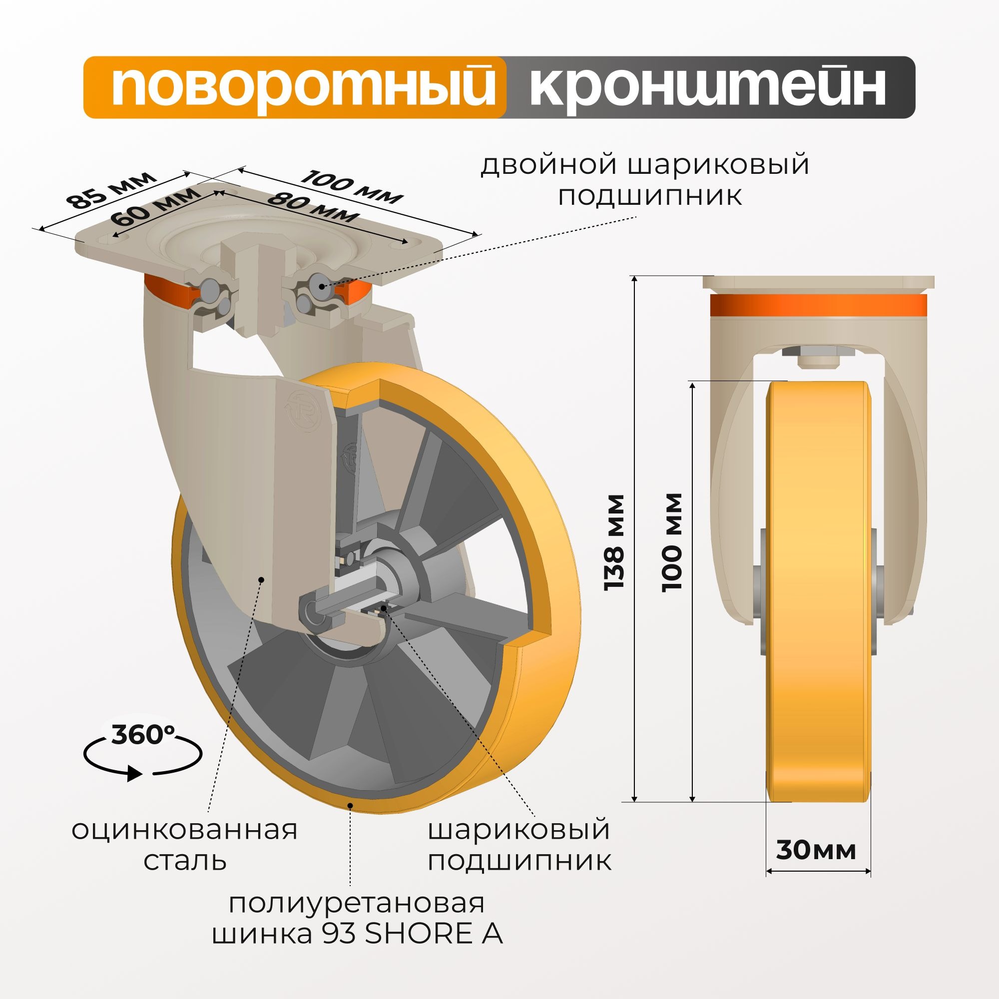 Большегрузное колесо 65 серии TR — идеальное решение для интенсивной эксплуатации в промышленных условиях, где требуется сочетание высокой грузоподъемности и плавности хода.