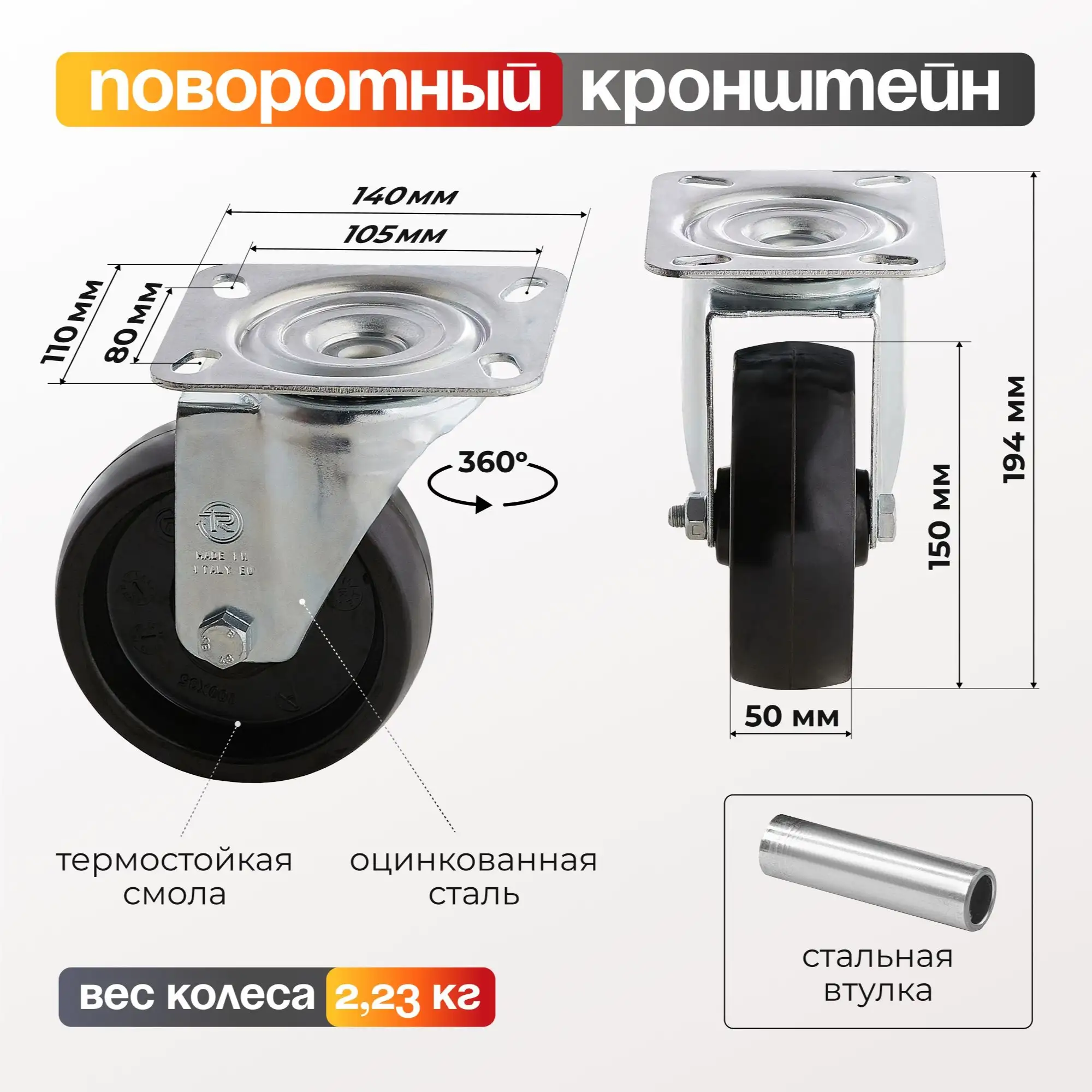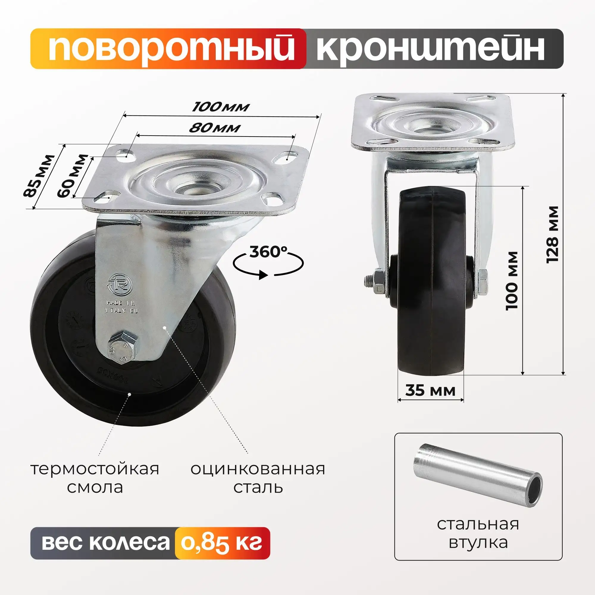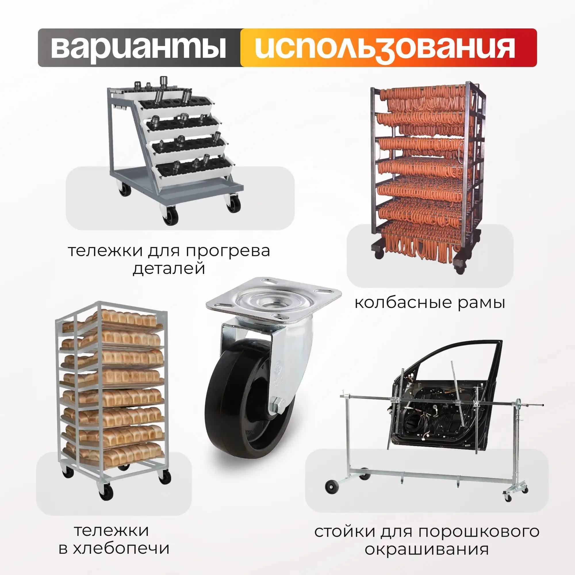 Колесо термостойкое (125 мм; 300 кг) поворотное Tellure Rota, фенольное до 300°С 676103