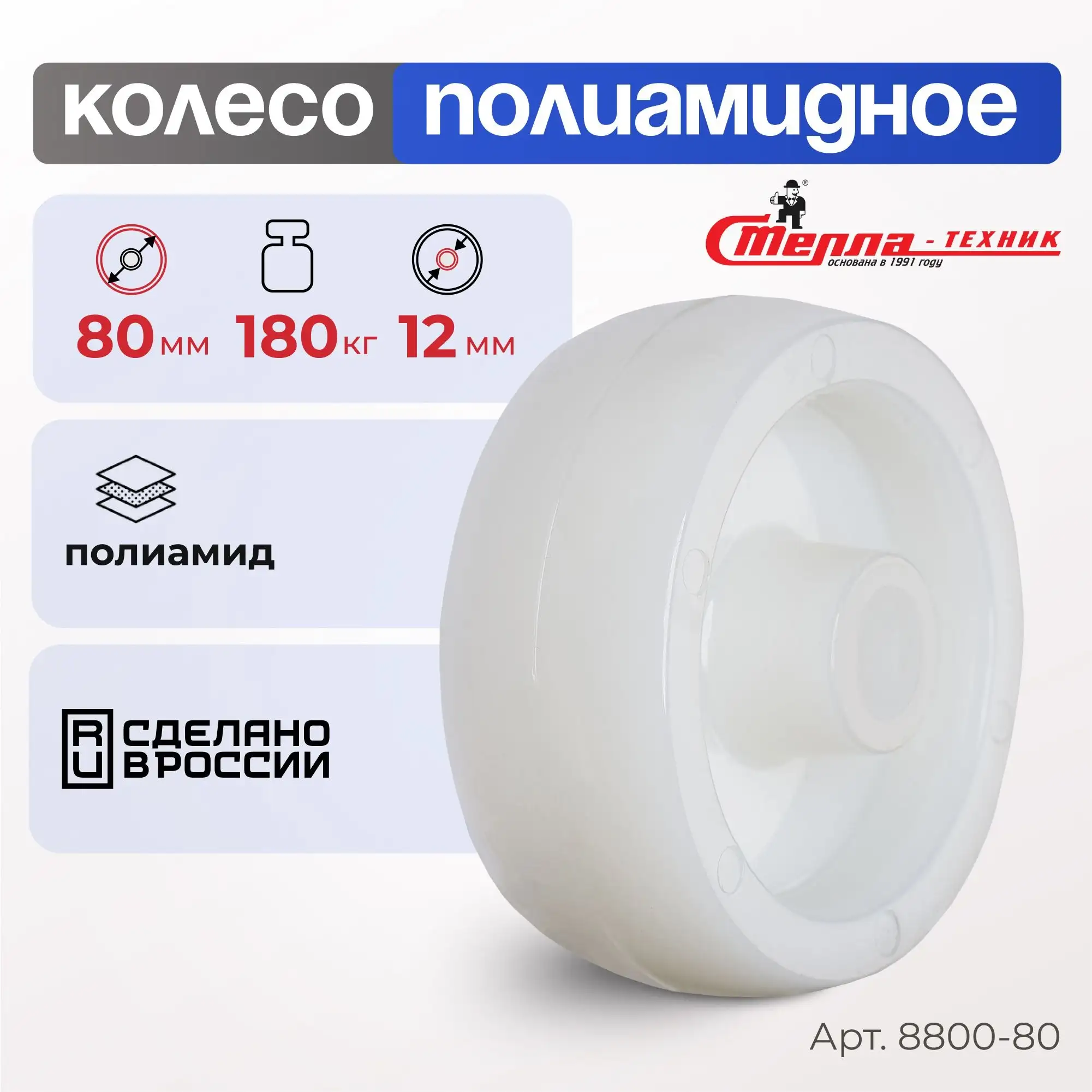 Колесо промышленное полиамидное (80 мм, 180 кг) под ось Стелла-техник 8800-80