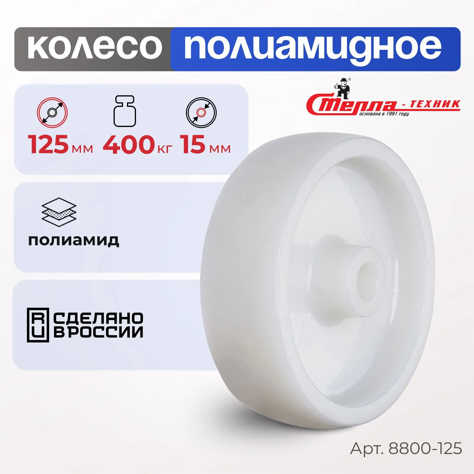 Колесо промышленное полиамидное (125 мм, 400 кг) под ось Стелла-техник 8800-125