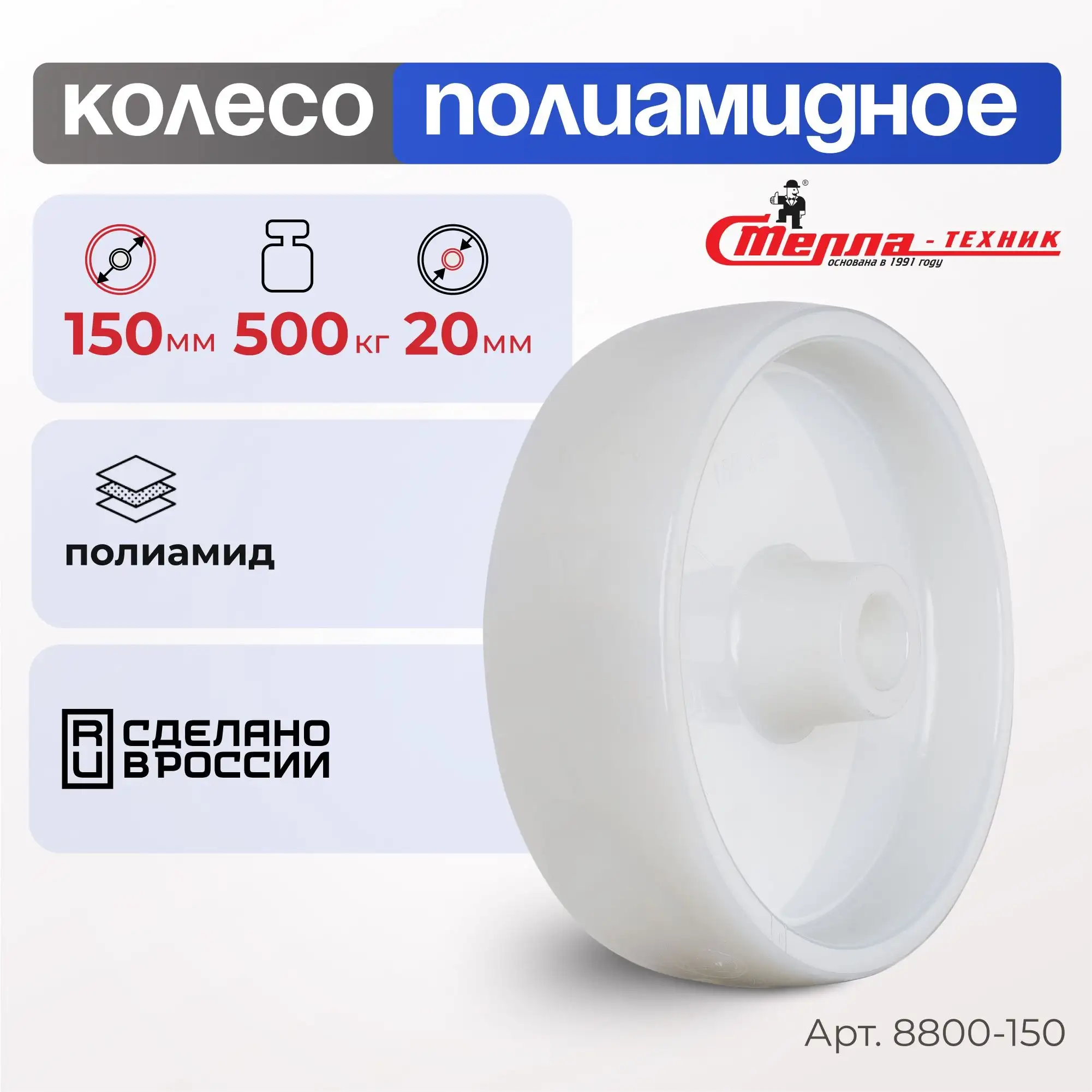 Колесо промышленное полиамидное (150 мм, 500 кг) под ось Стелла-техник 8800-150