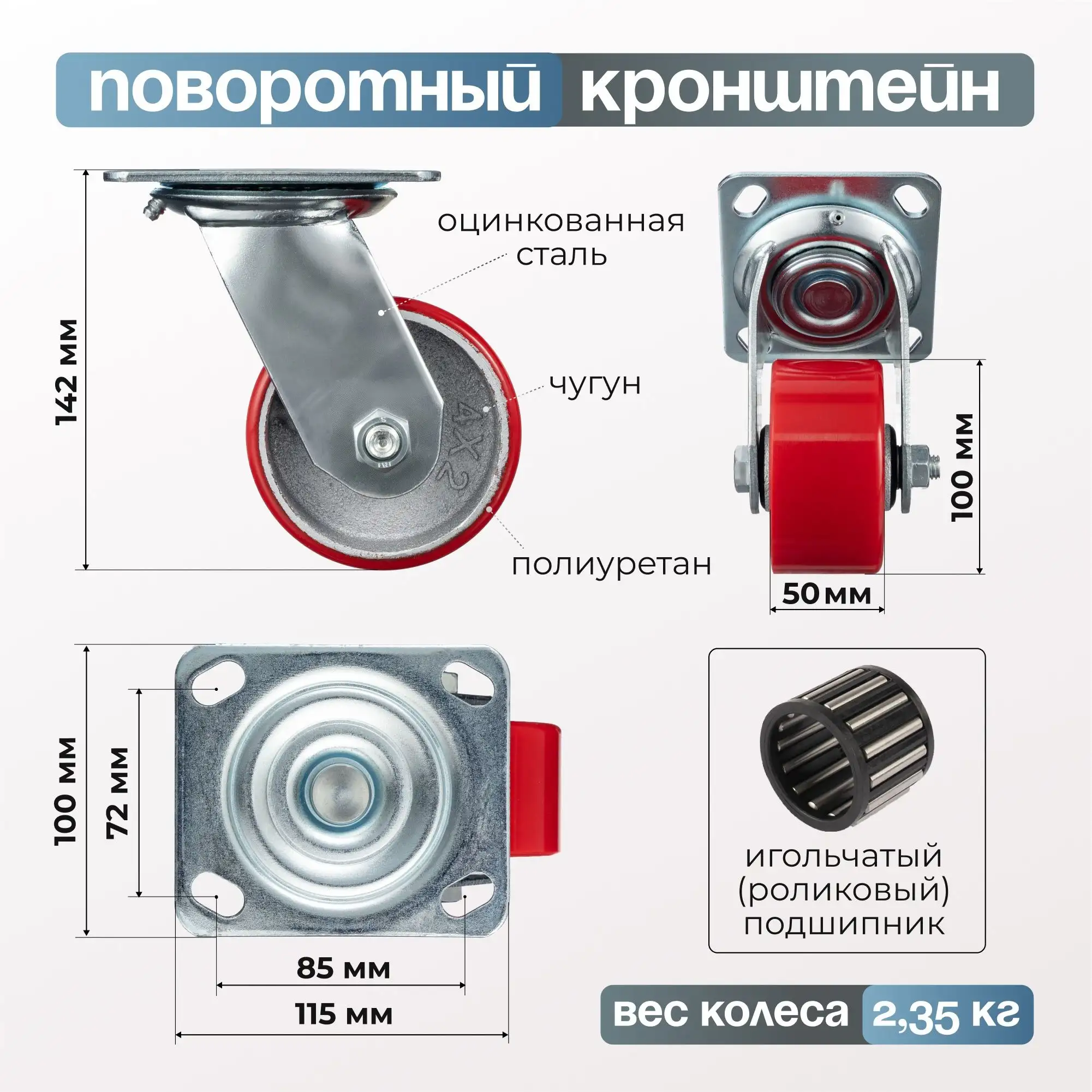 Колесо промышленное (150 мм, 300 кг) поворотное Стелла-техник, полиуретан / чугун N29150CPU