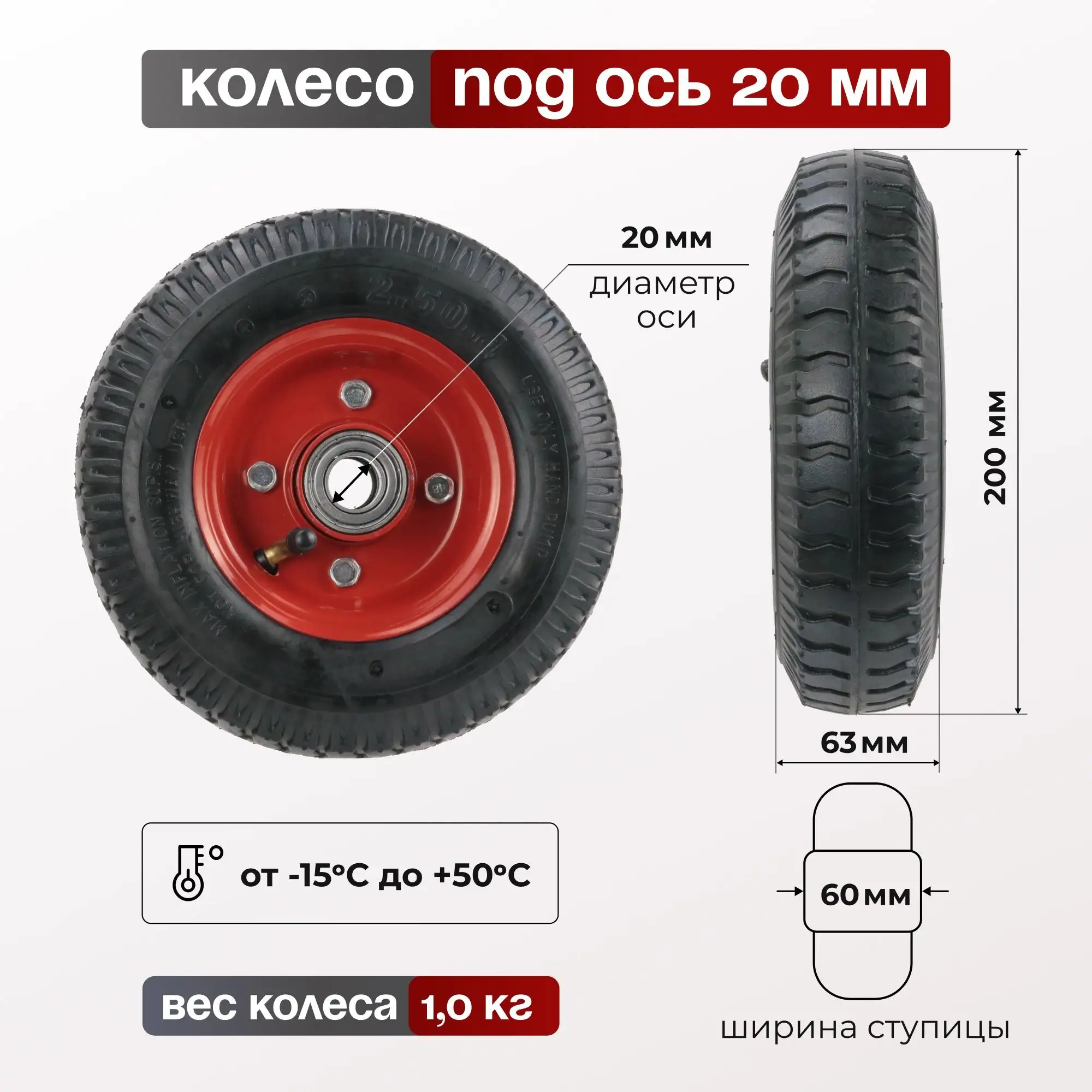 Колесо пневматическое (200 мм, 150 кг) под ось 20 мм Стелла-техник PR200M-20PB