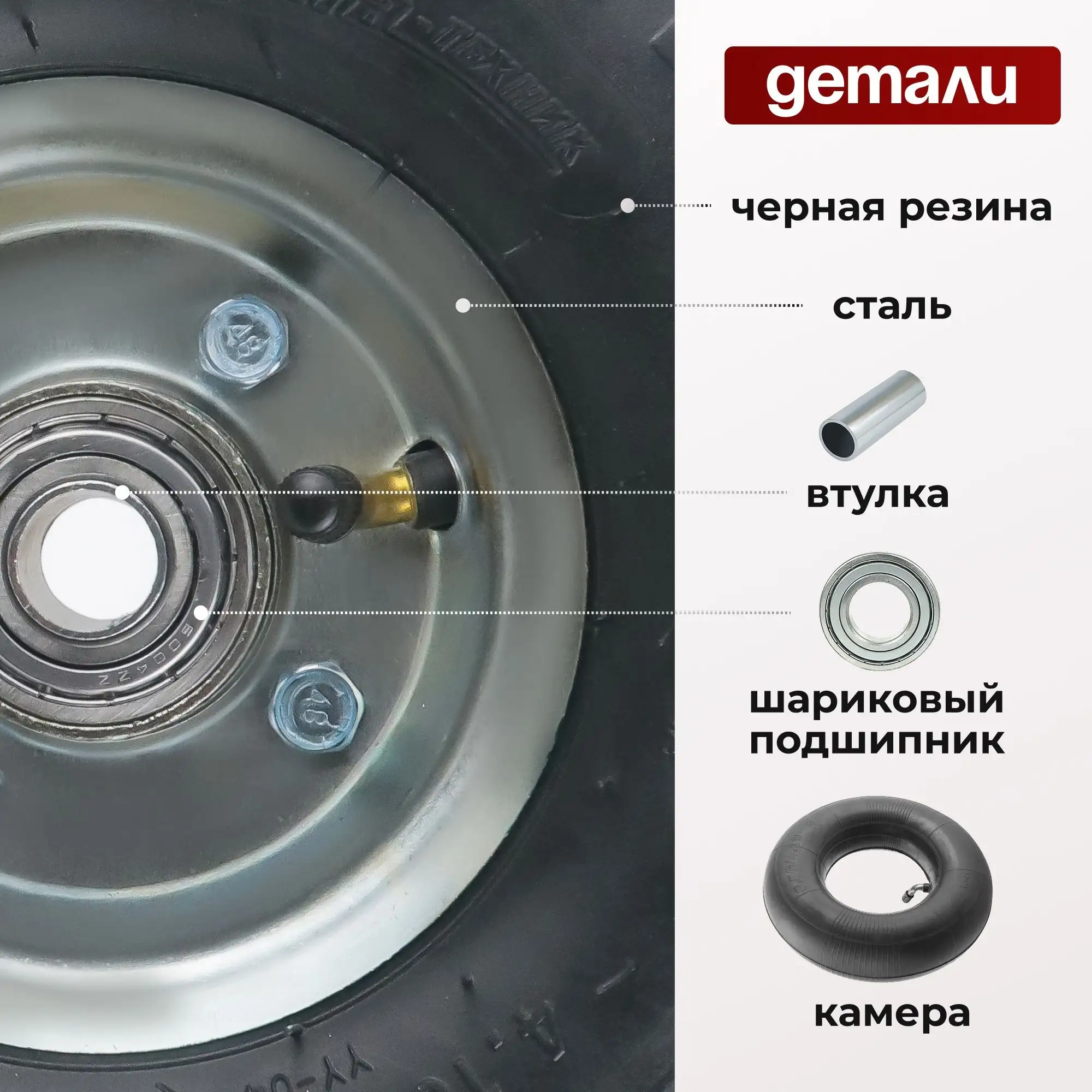 Колесо пневматическое (255 мм, 136 кг) под ось 16 мм Стелла-техник PR255M-16PB