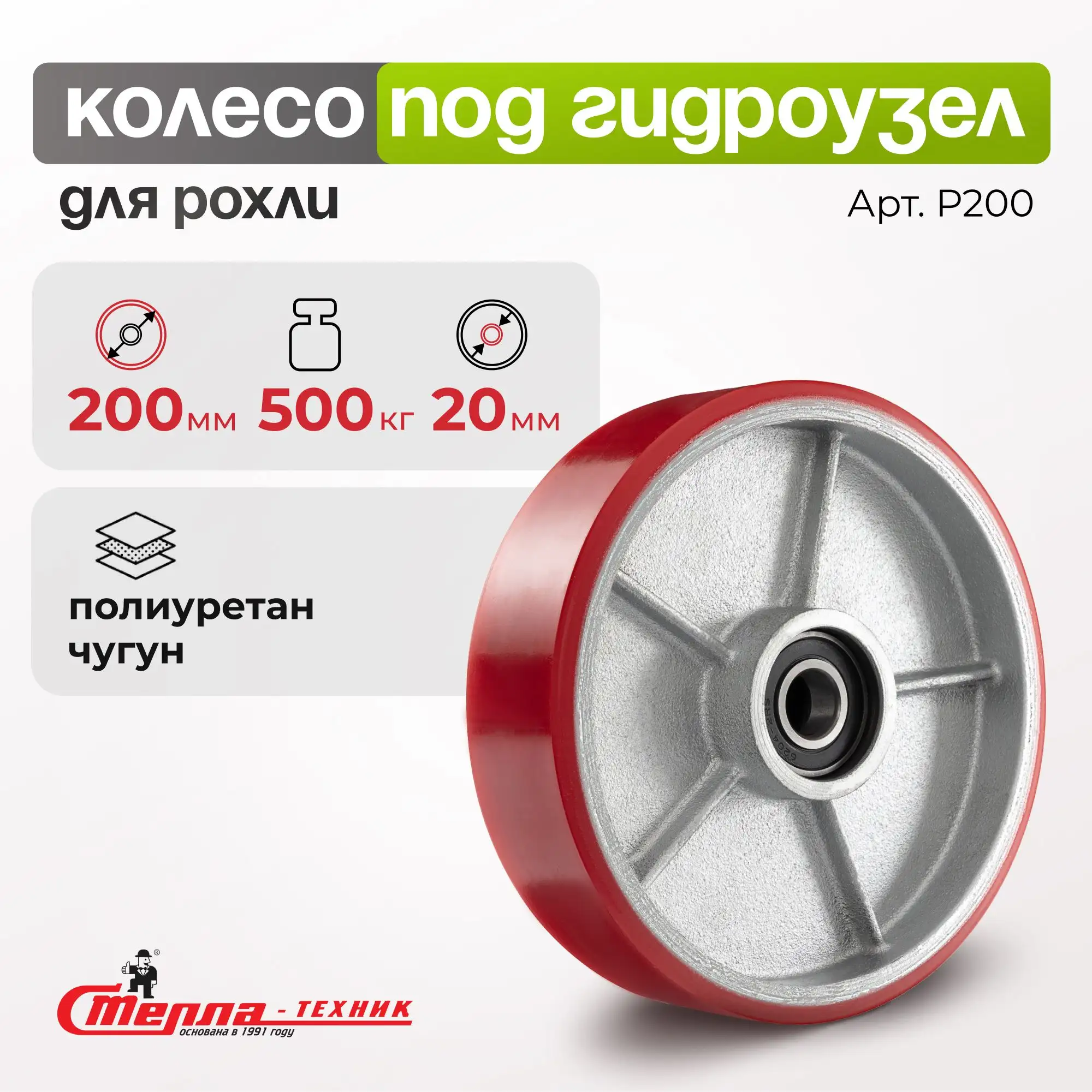 Рулевое колесо полиуретановое (200 мм, 500 кг) с подшипником (втоплен) Стелла-техник P200