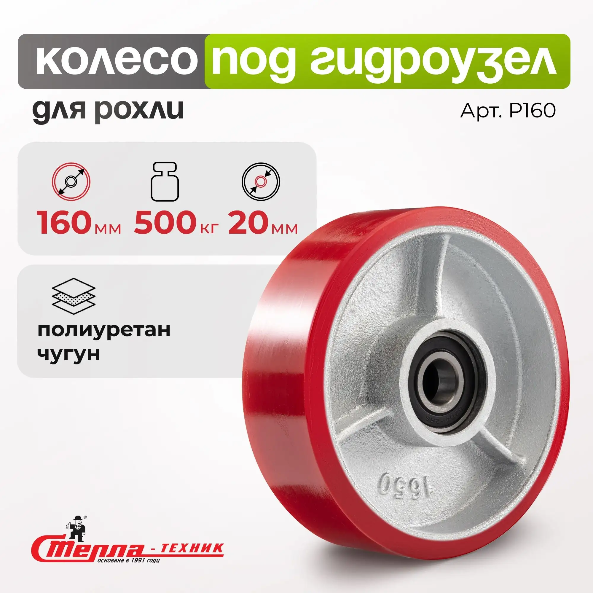 Рулевое колесо полиуретановое (160 мм, 500 кг) с подшипником (втоплен) Стелла-техник P160