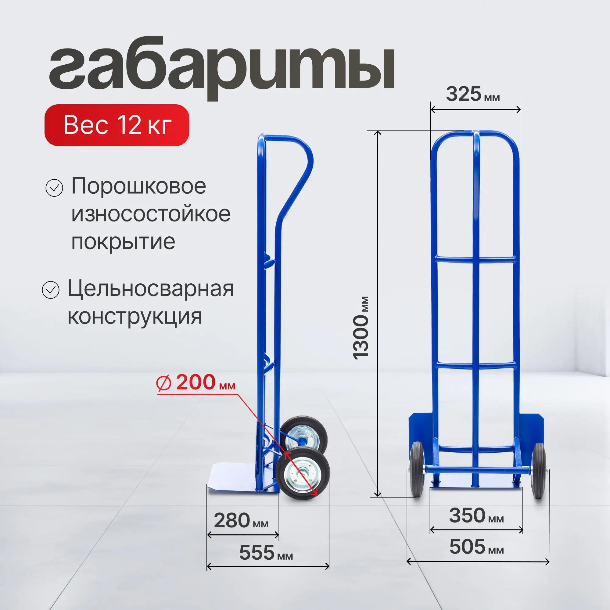 Грузоподъемность складских двухколесных тележек колеблется в пределах от 150 до 300 кг. В целях безопасности транспортировки продукции у многих моделей к площадкам приварены дополнительные боковые стенки. Изделия характеризуются компактными размерами и маленькой массой, что делает устройства подходящими для перевозки в автомобильном транспорте.