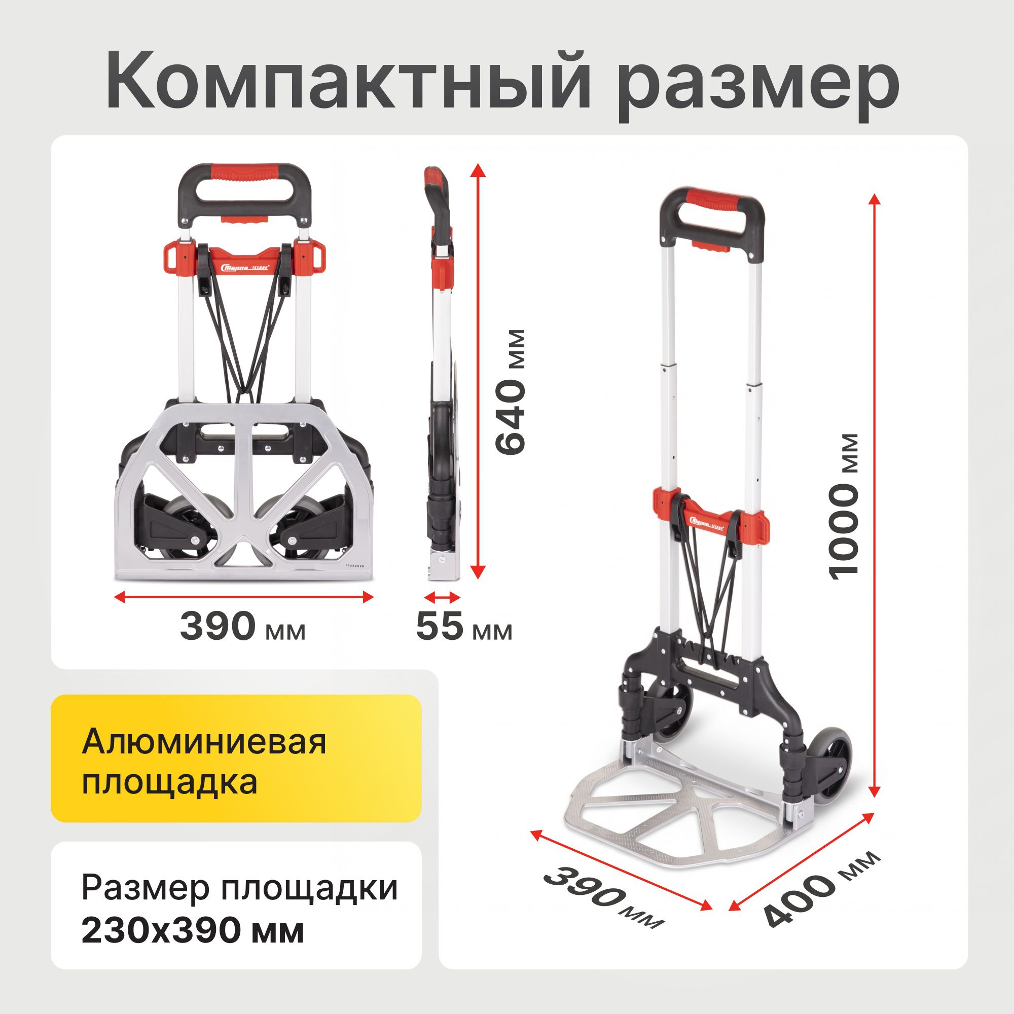 Ручные тележки имеют прочные алюминиевые рамы. Для перевозки грузов применяются решетчатые платформы. Площадки легко откидываются и при необходимости быстро складываются.
