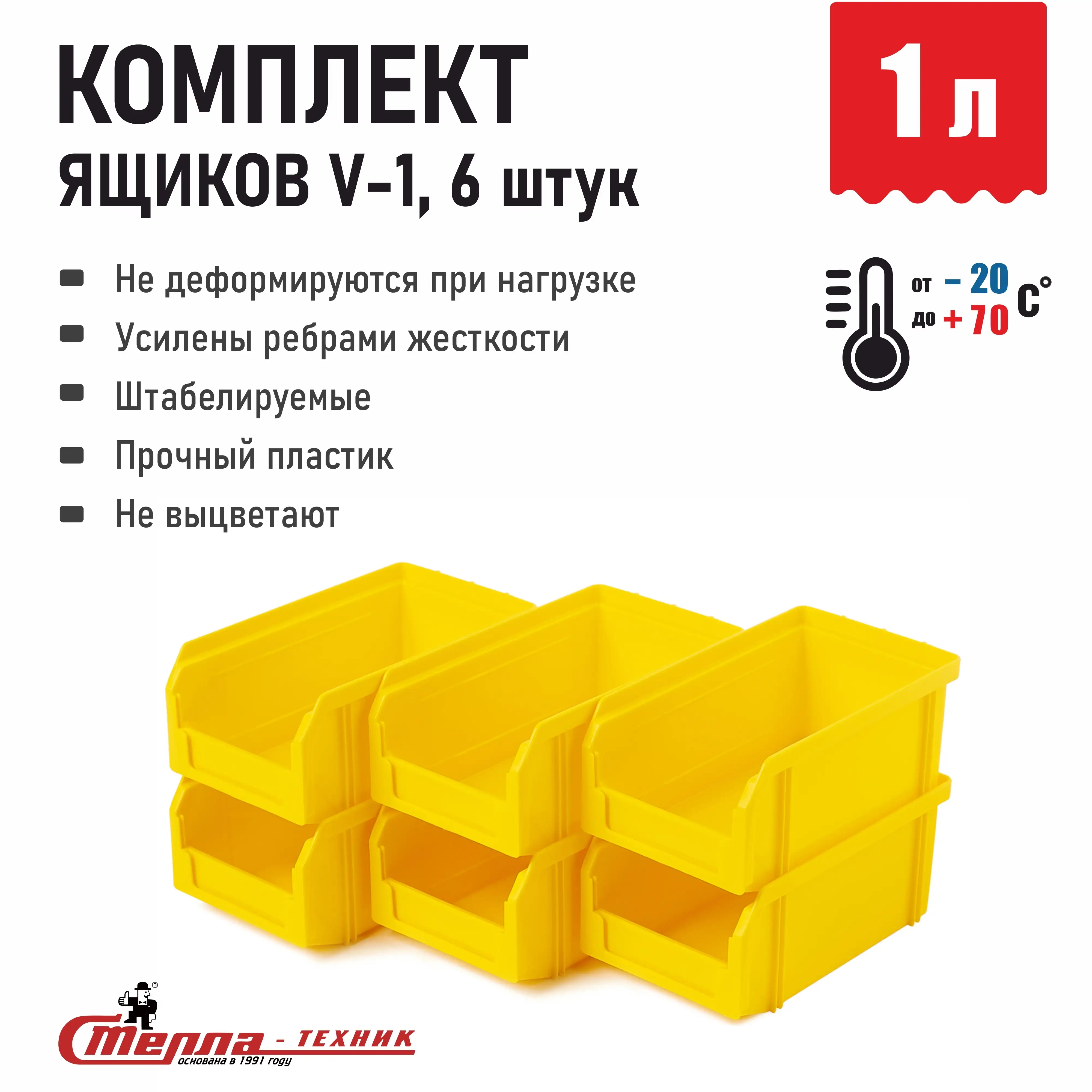 Складской пластиковый ящик, лоток для метизов Стелла-техник 171х102х75 мм, 1 л, комплект 6 шт. V-1-К6-желтый