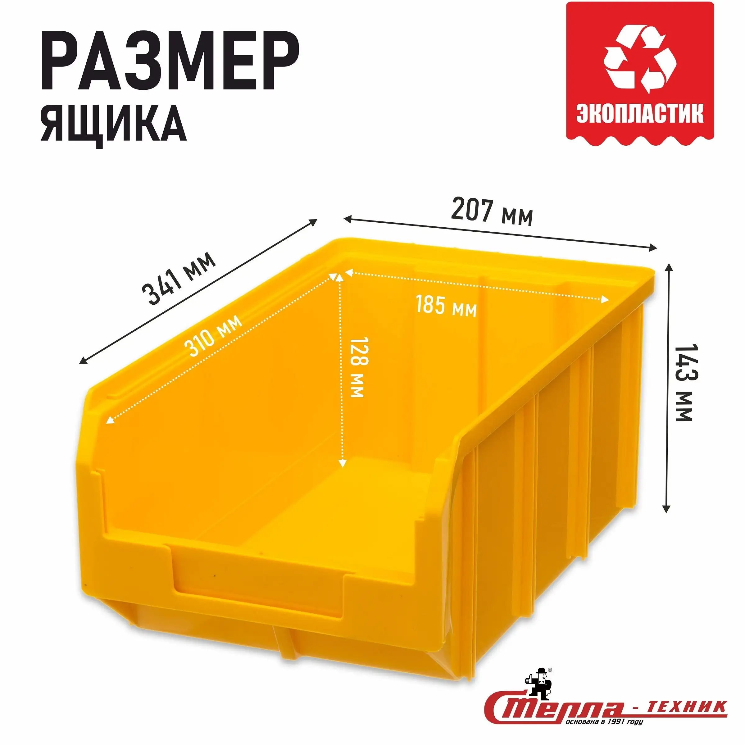 Складской пластиковый ящик, лоток для метизов желтый Стелла-техник (341х207x143 мм), 9,4 л V-3-желтый